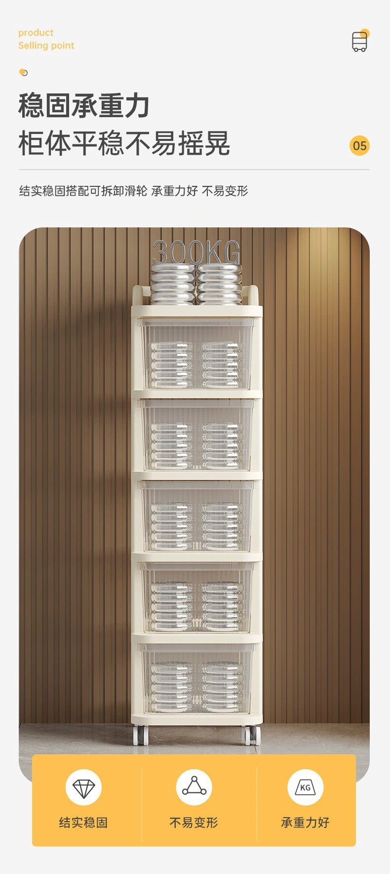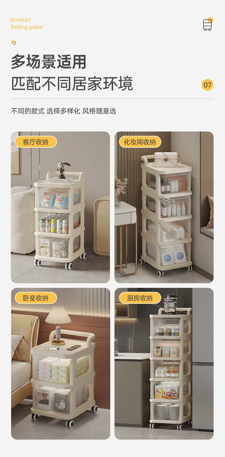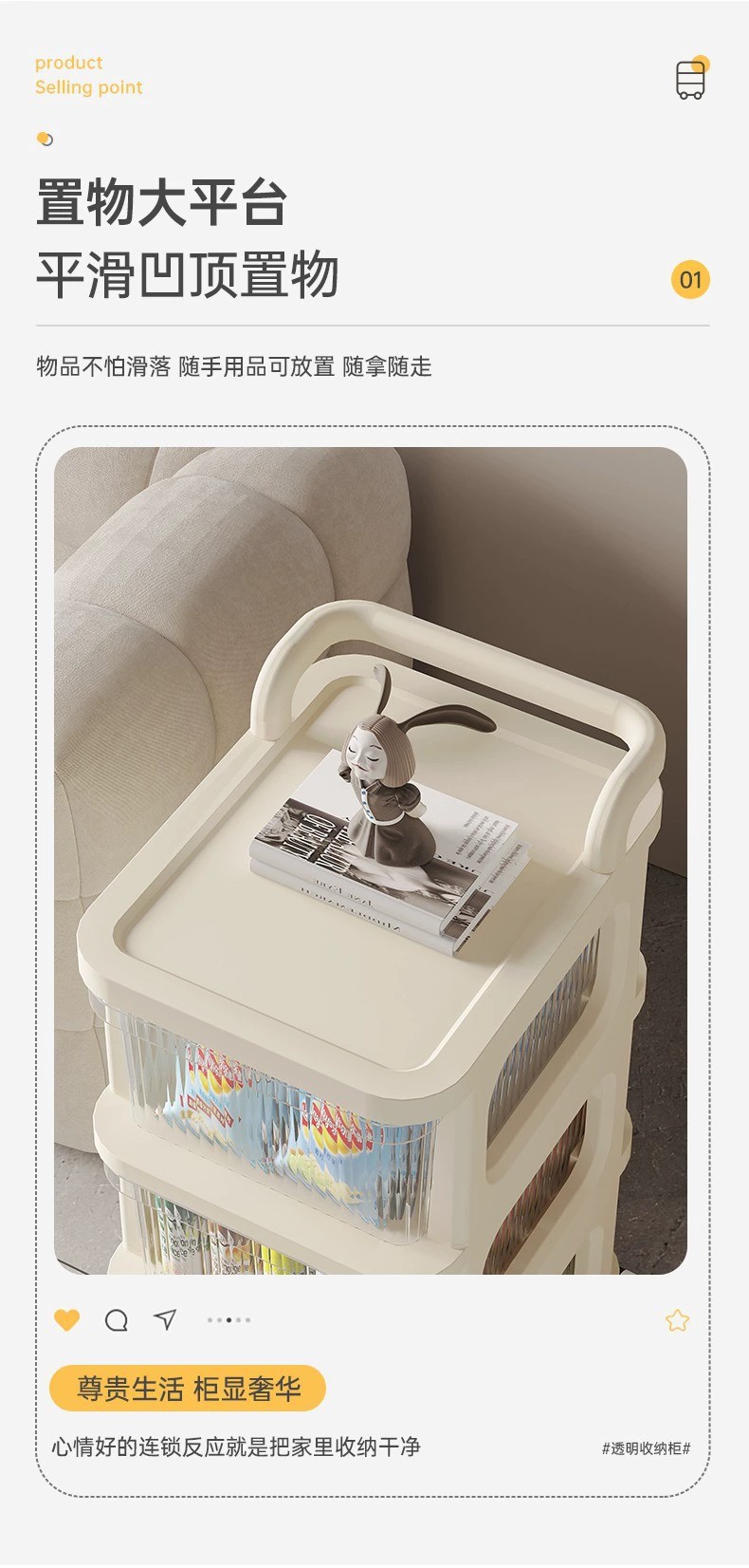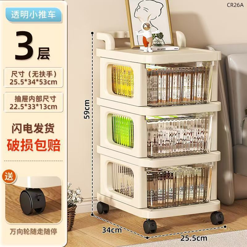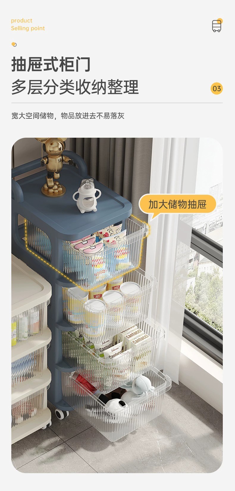 바퀴 잡화 저장 랙을 가진 투명한 서랍 유형 트롤리 저장 랙 간식 장난감 아기 제품 보관 캐비닛