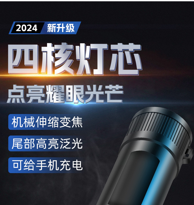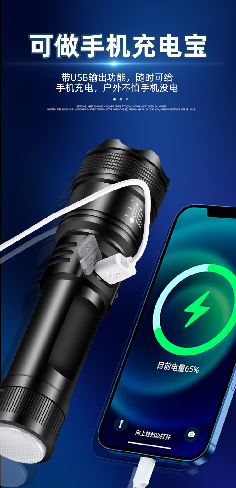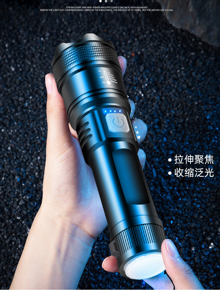 손전등 줌 개폐식 다기능 야외 강한 빛 led 휴대용 충전 작업 원격 샷 하이라이트 손전등