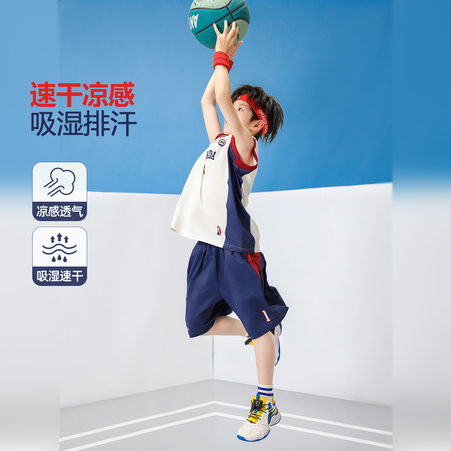 팬더위안위안 남아용 여름 얇은 시원한 통기성 농구복 2026 신상 아동 스포츠웨어 속건복스토어 가기