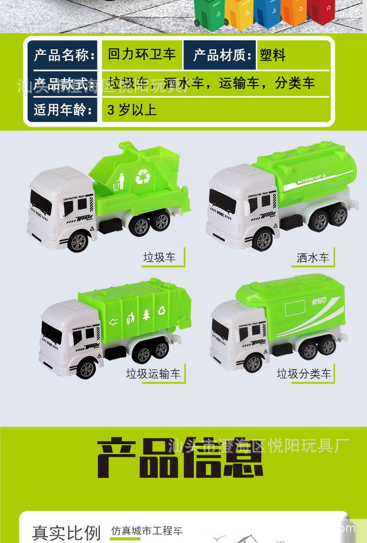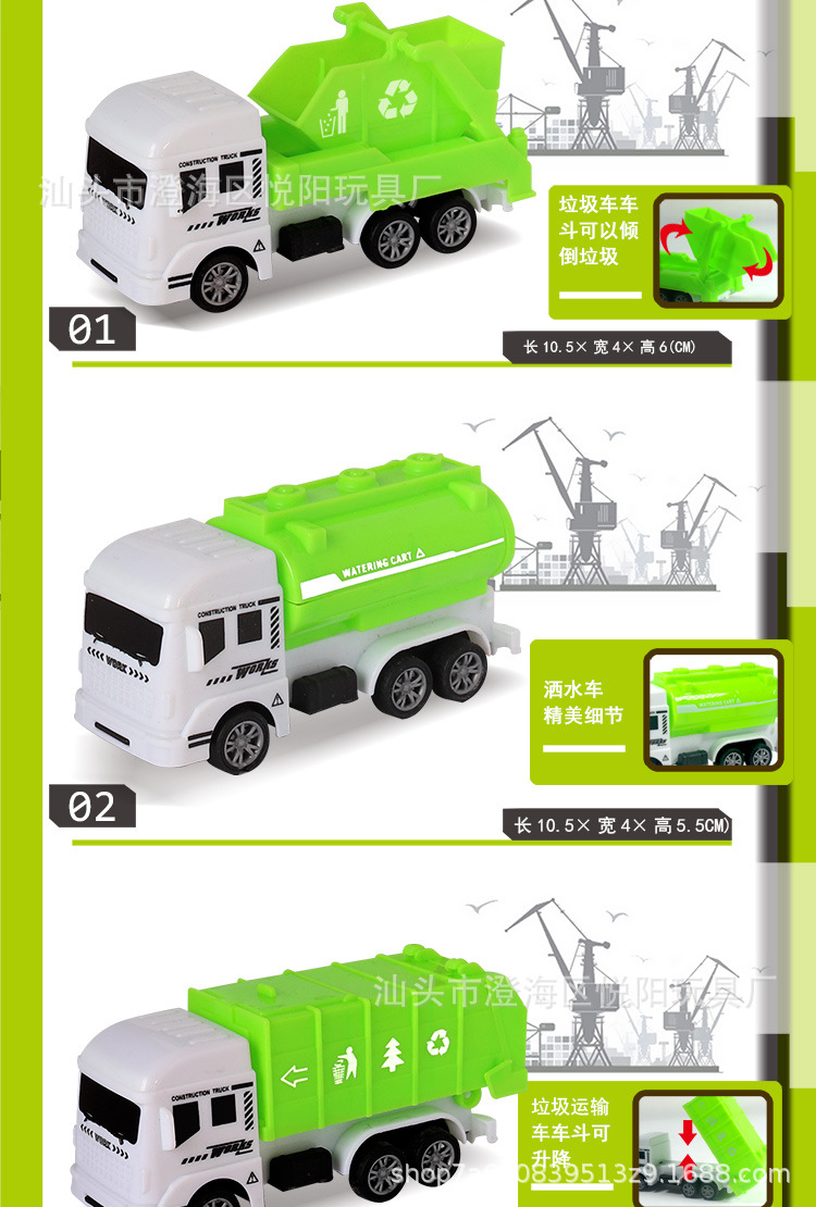Chenghai 장난감 공장 시뮬레이션 어린이 Huili 엔지니어링 차량 굴삭기 세트 장난감 위생 차량 Stall 도매스토어 가기