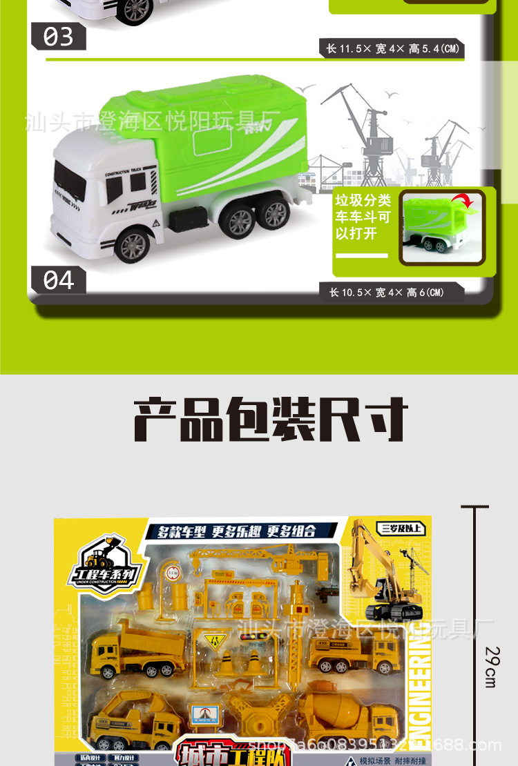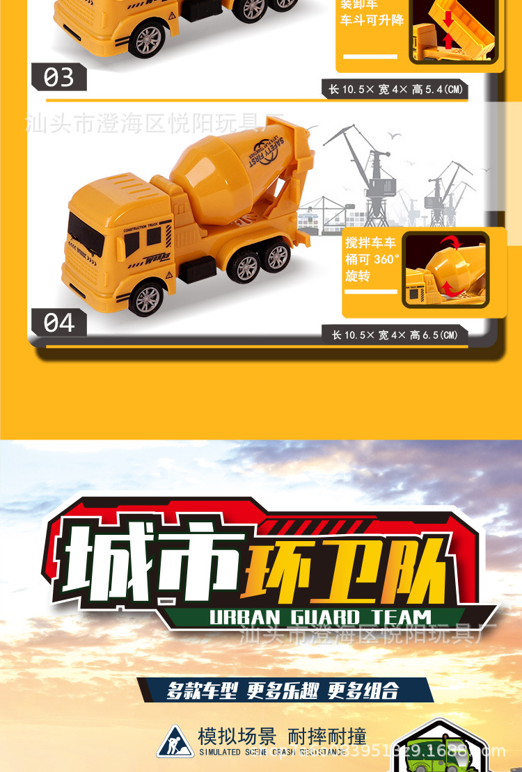 Chenghai 장난감 공장 시뮬레이션 어린이 Huili 엔지니어링 차량 굴삭기 세트 장난감 위생 차량 Stall 도매