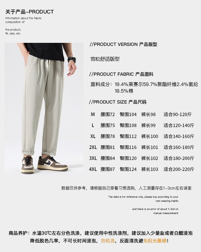 莱赛尔天丝棉裤子男2024夏季薄款高端休闲裤宽松直筒百搭锥形长裤