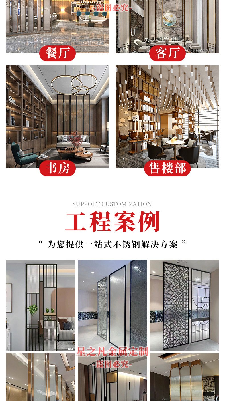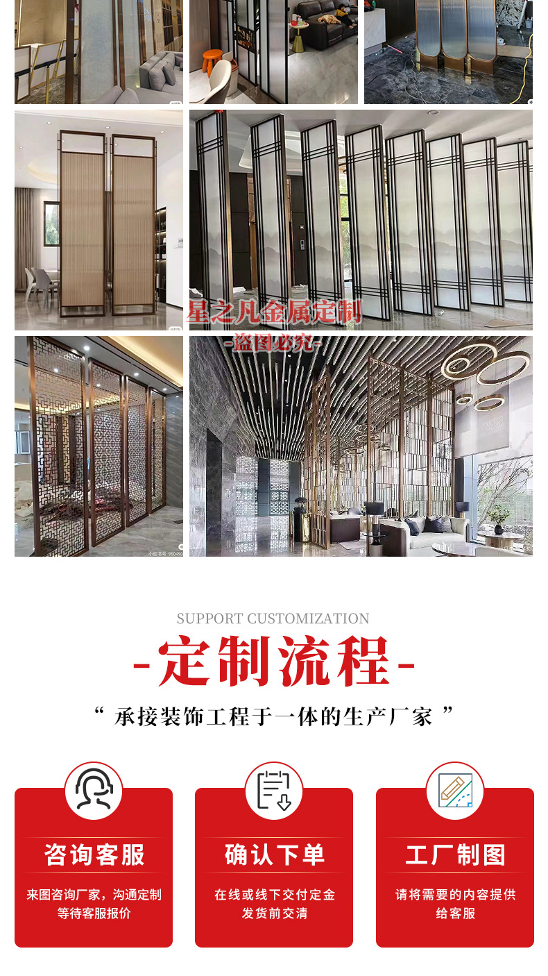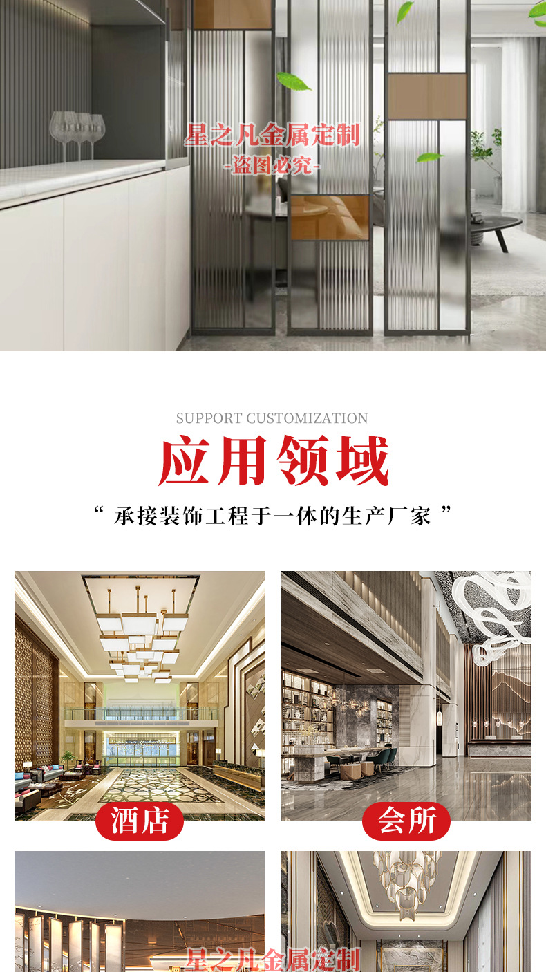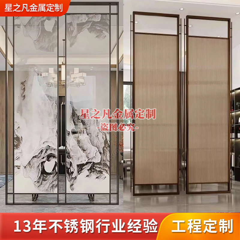 하이 엔드 스테인레스 스틸 아트 유리 스크린 다이닝 룸 금속 카드 시트 장식 빌라 거실 입구 파티션