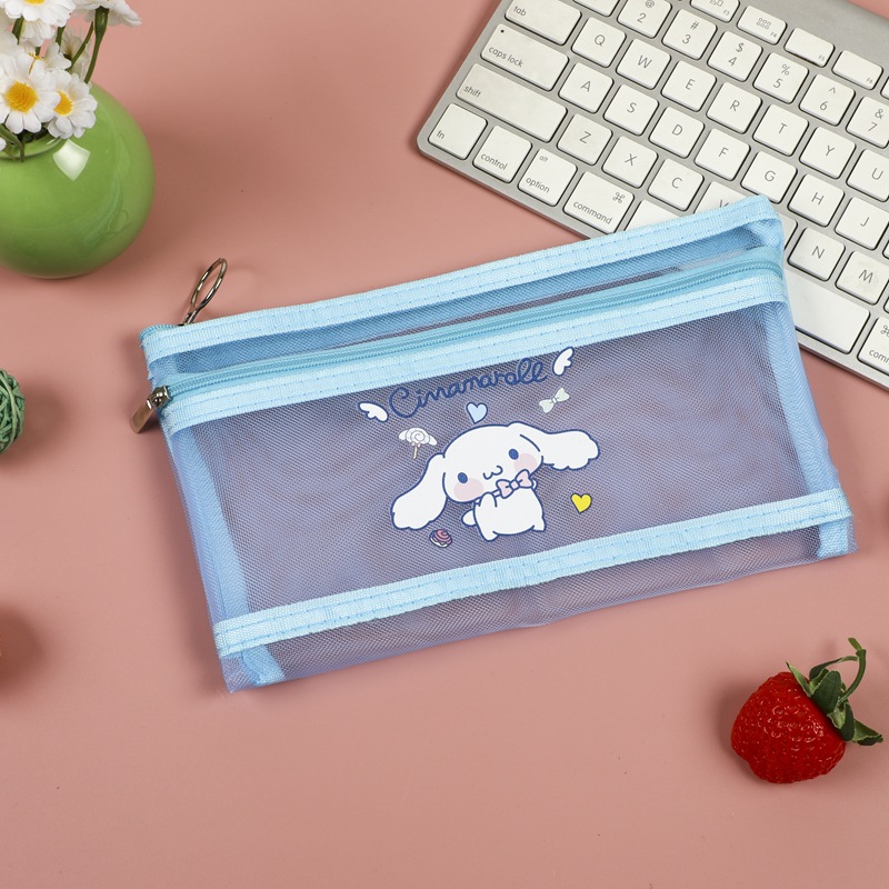 메쉬 연필 가방 산리오 가족 캐릭터 만화 귀여운 저장 가방 학생의 대용량 문구 가방 연필 가방