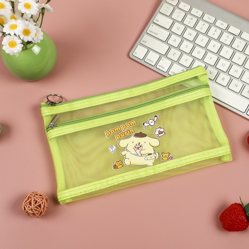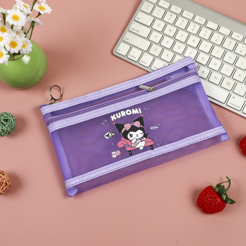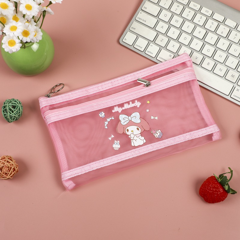 메쉬 연필 가방 산리오 가족 캐릭터 만화 귀여운 저장 가방 학생의 대용량 문구 가방 연필 가방스토어 가기