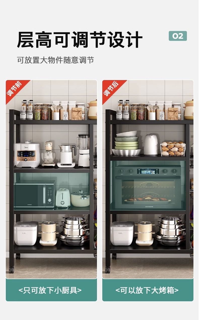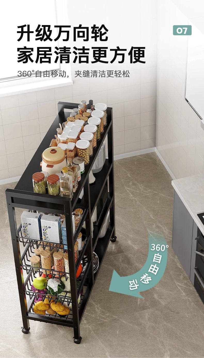 주방 보관 랙 바닥 다기능 가정용 다층 보관 랙 스낵 랙 바퀴가 달린 식료품 보관 랙