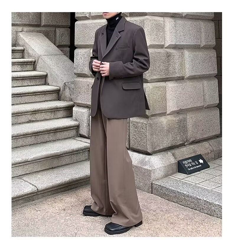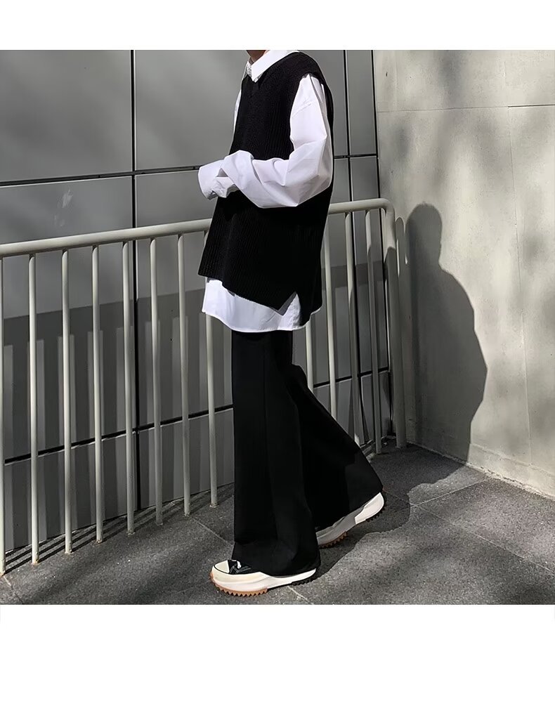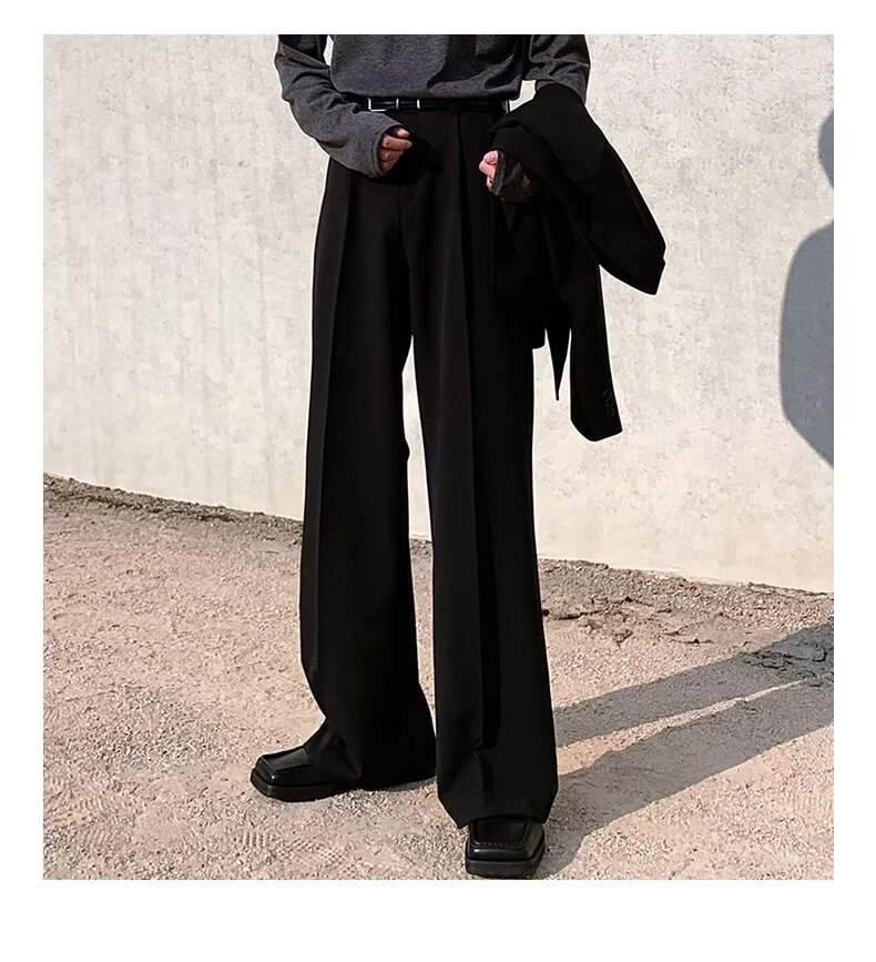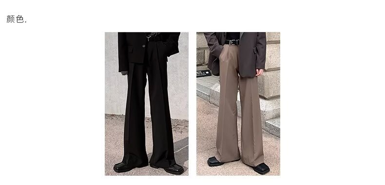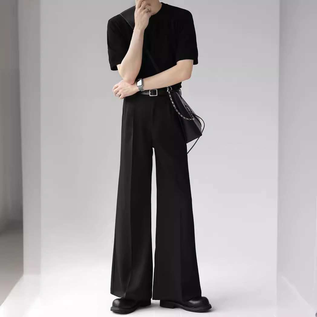 고급 디자인 펜던트 마이크로 혼 캐주얼 바지 남성 봄과 여름 스트레이트 루즈 펜던트 와이드 레그 솔리드 컬러 롱 바지
