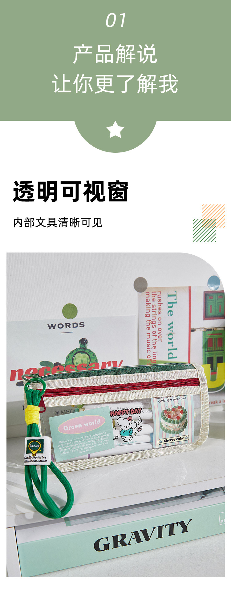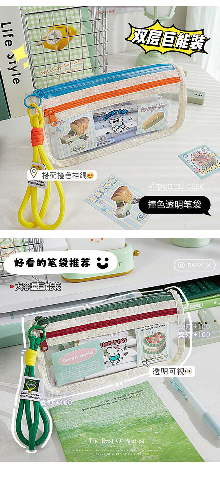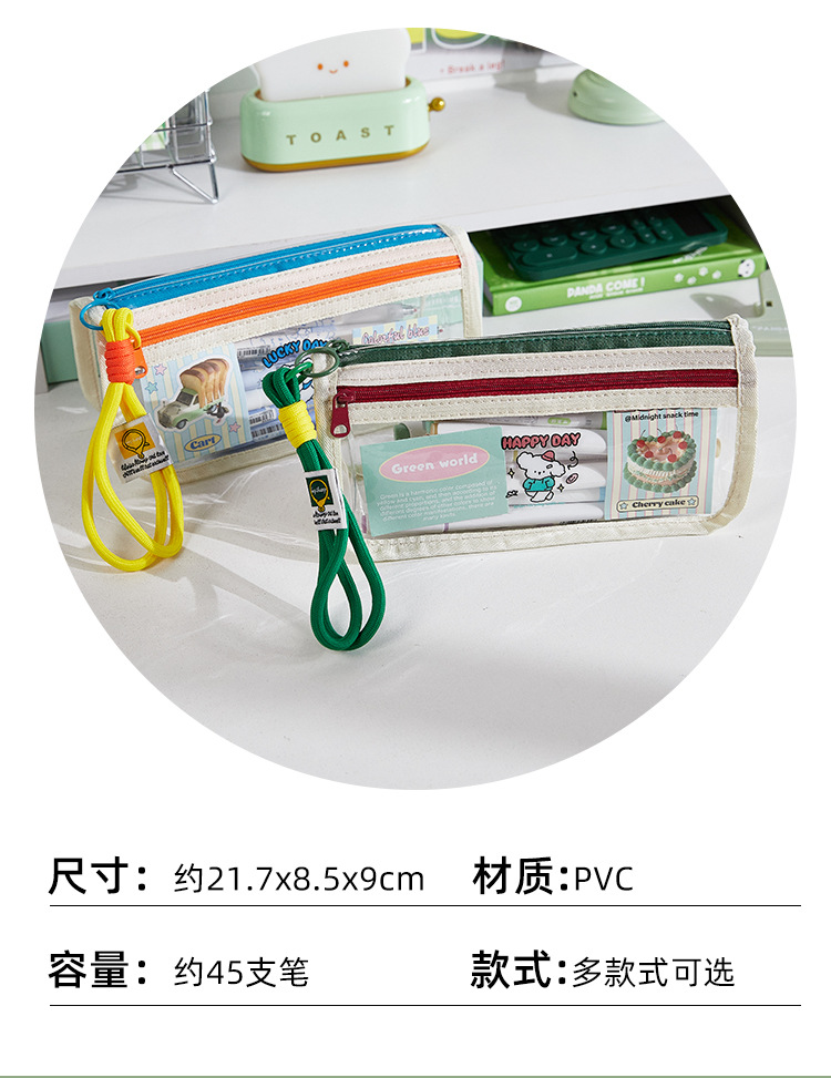 새로운 투명 색상 대비 대용량 연필 가방 소녀의 디자인 센스 틈새 문구 상자 초등 학생 스타일 연필 상자