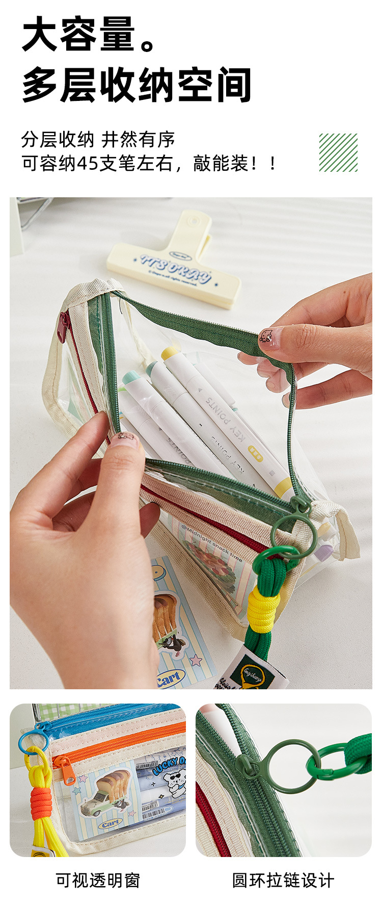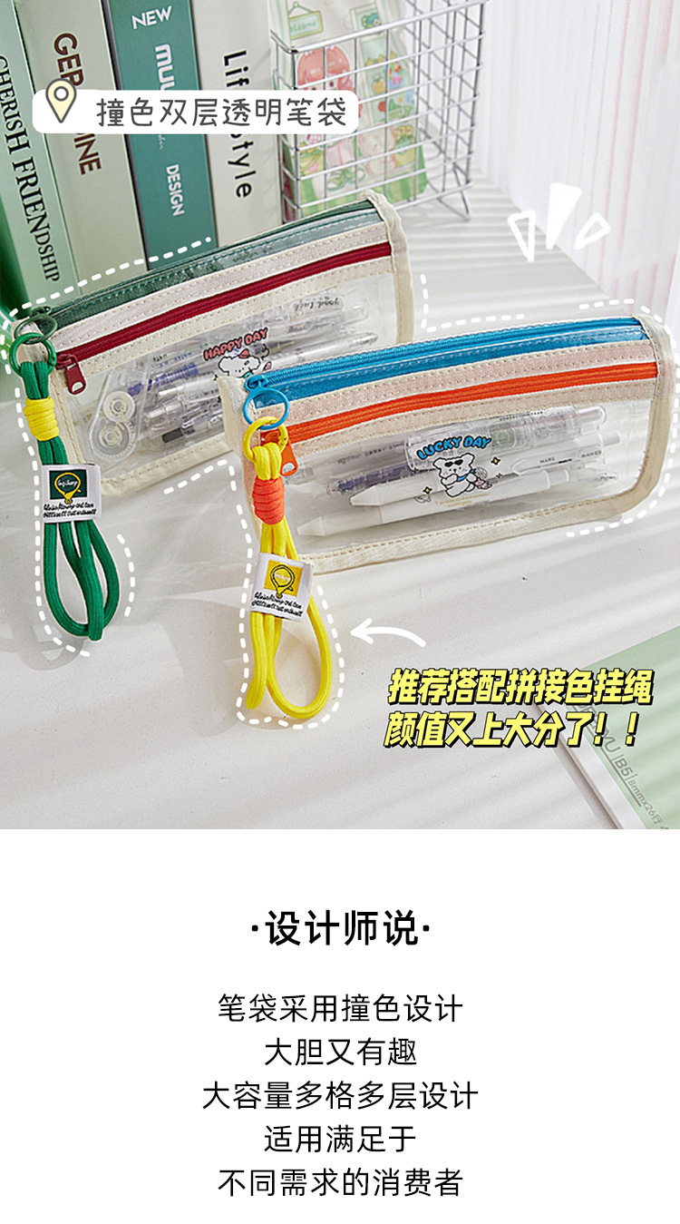 새로운 투명 색상 대비 대용량 연필 가방 소녀의 디자인 센스 틈새 문구 상자 초등 학생 스타일 연필 상자스토어 가기