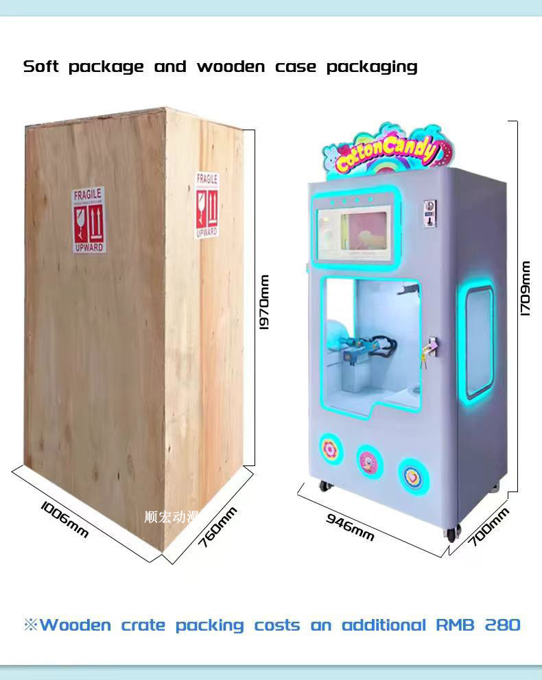 완전 자동 마시멜로 기계, 상업용 수출용, 관광지용, 무인 판매기, 60가지 색상 판매기, 스마트 현금 및 카드 결제스토어 가기