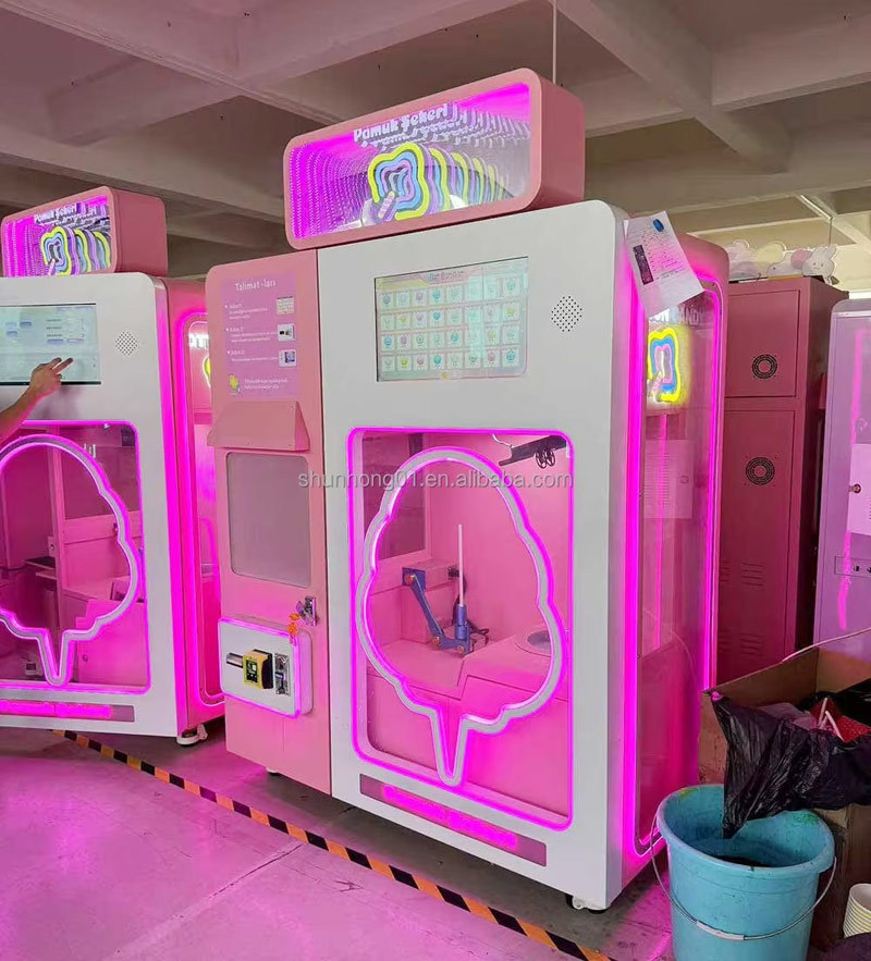 완전 자동 마시멜로 기계, 상업용 수출용, 관광지용, 무인 판매기, 60가지 색상 판매기, 스마트 현금 및 카드 결제