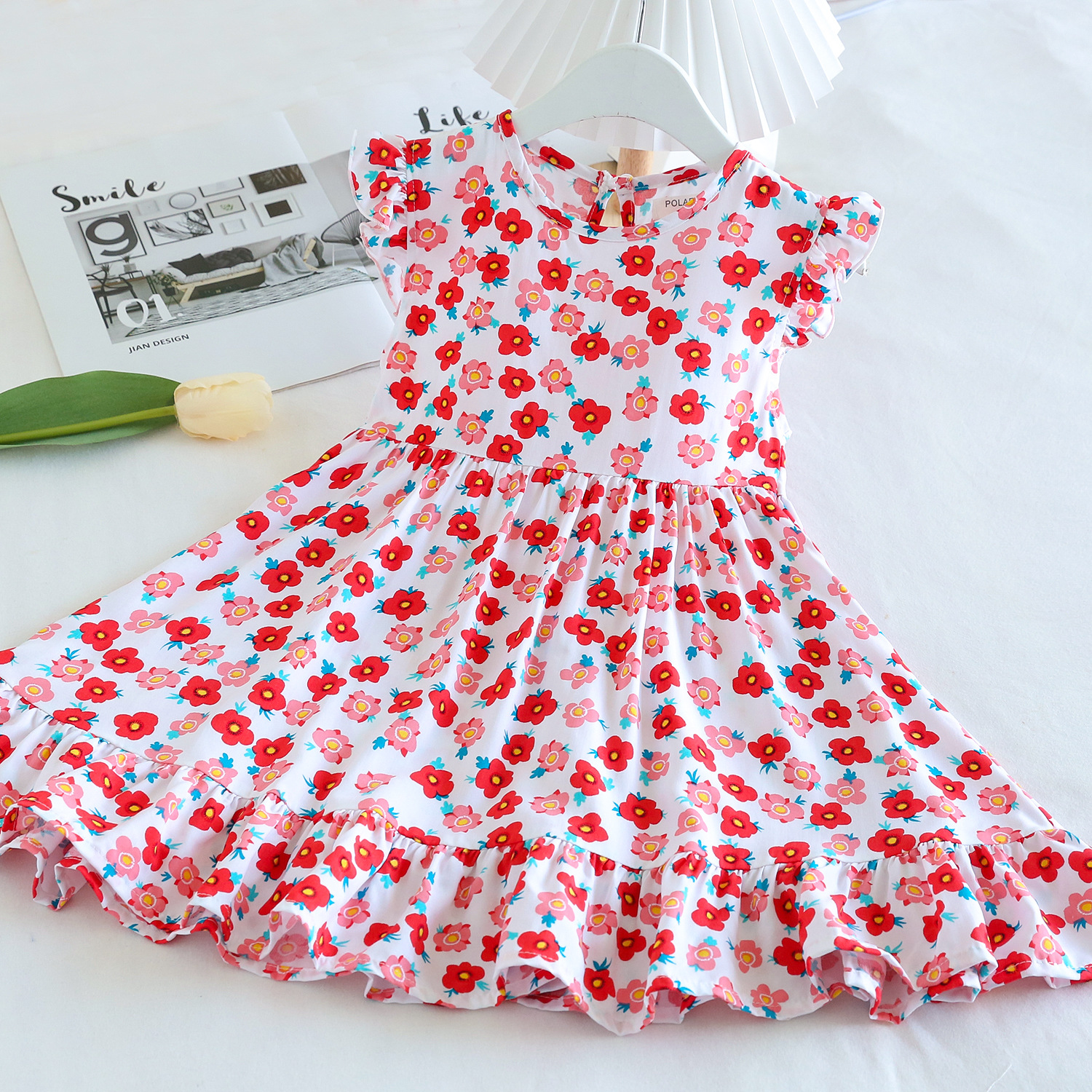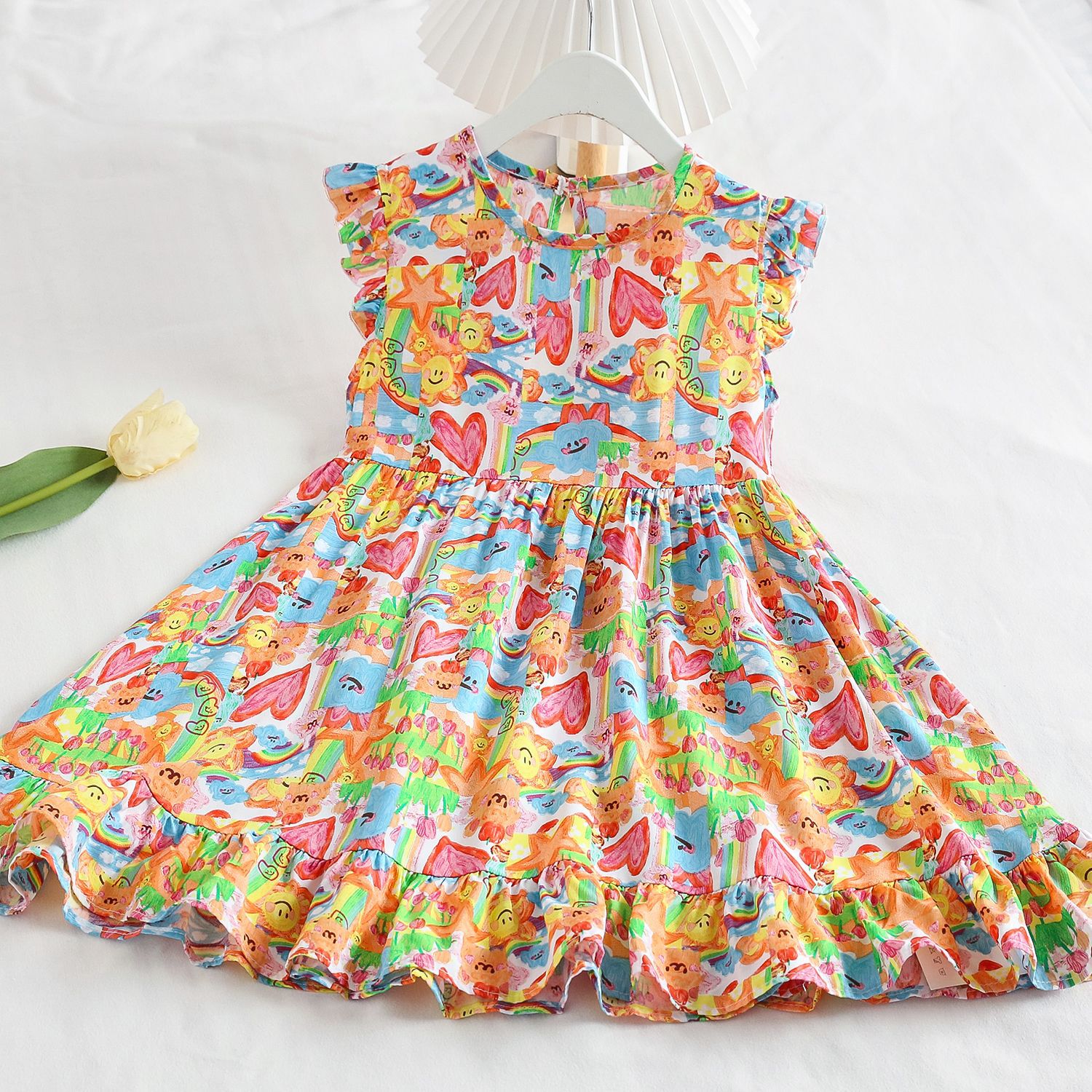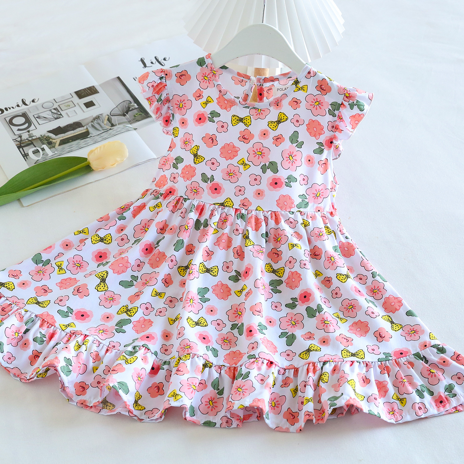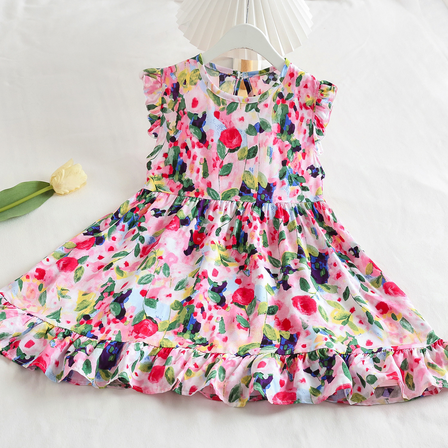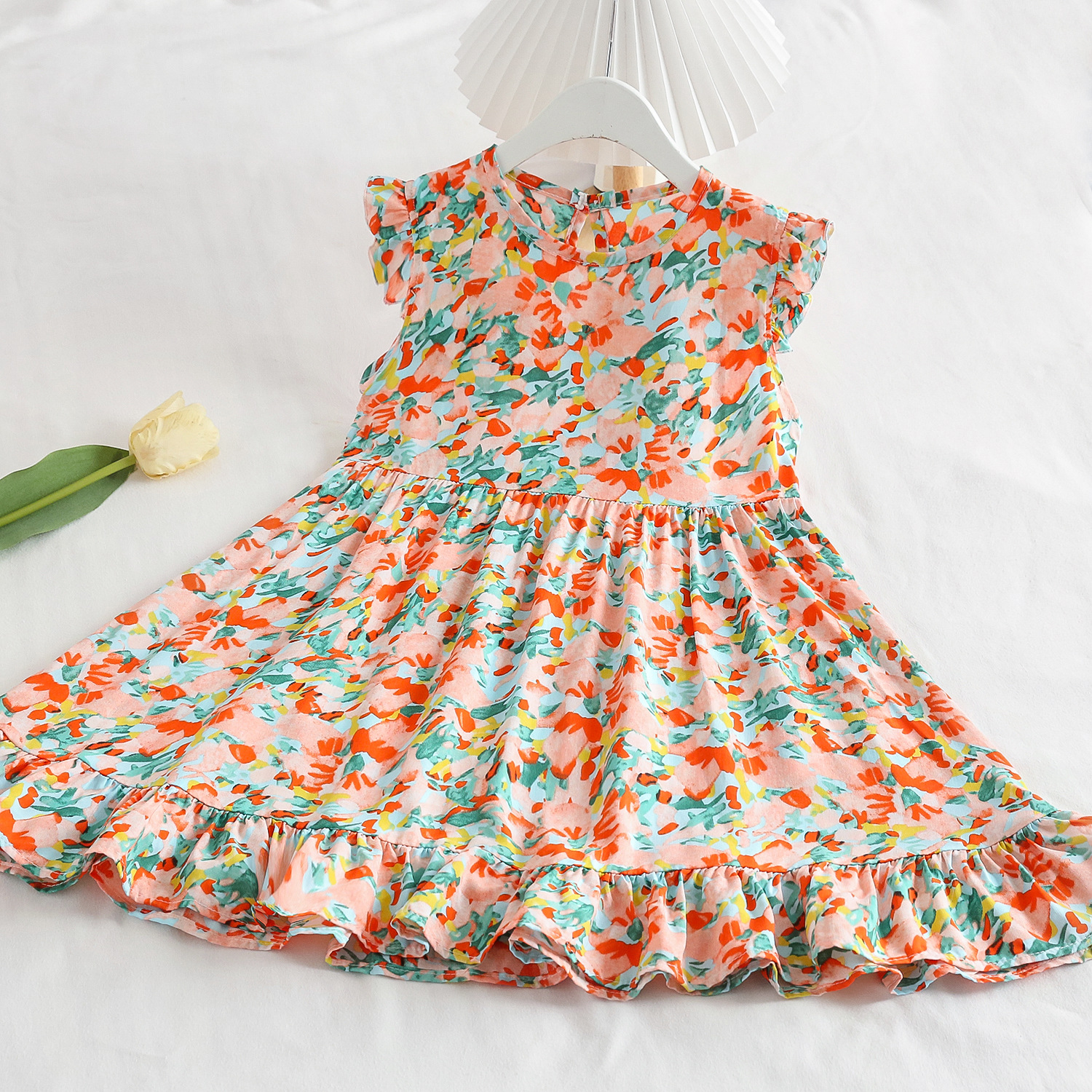 여름 소녀 코튼 두꺼운 원피스 대형 어린이 대형 스커트 플라잉 슬리브 공주 원피스 쿨 얇은 부드러운 베이비 비치 원피스