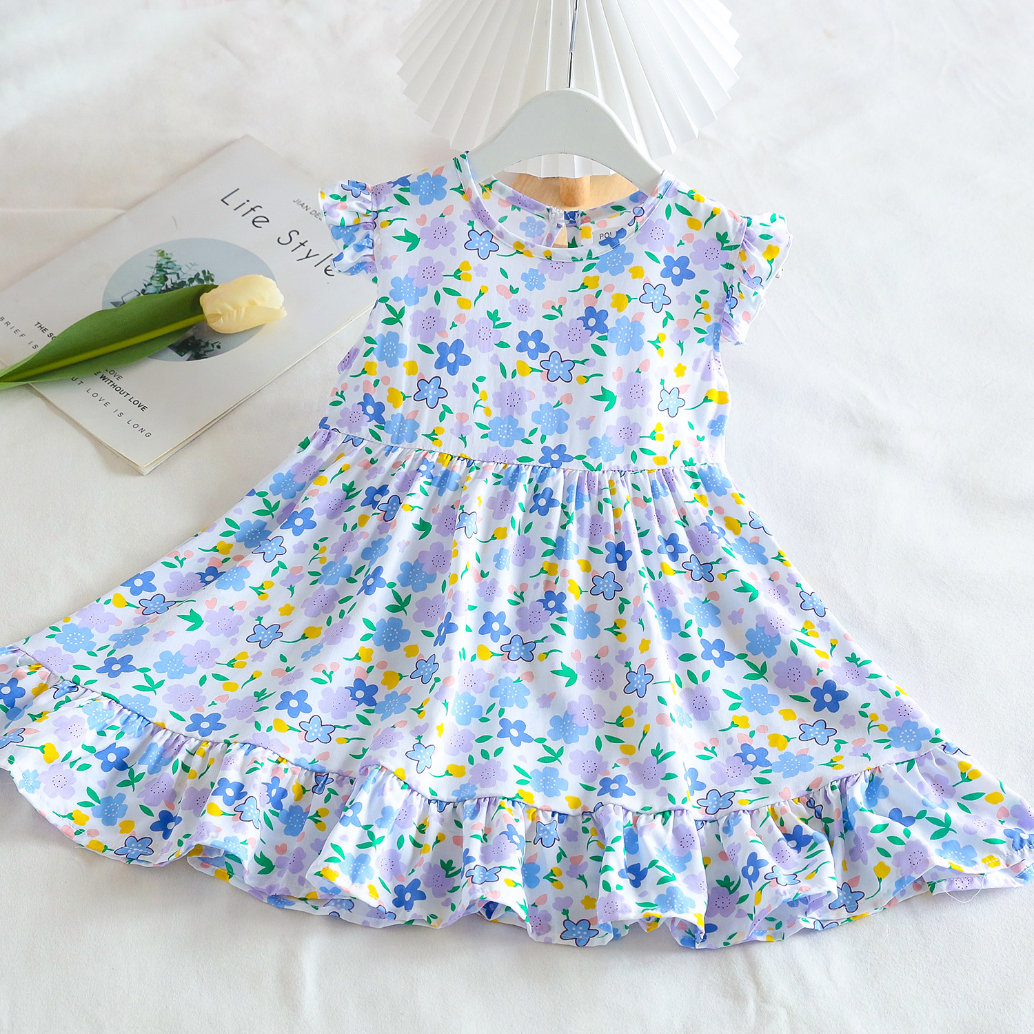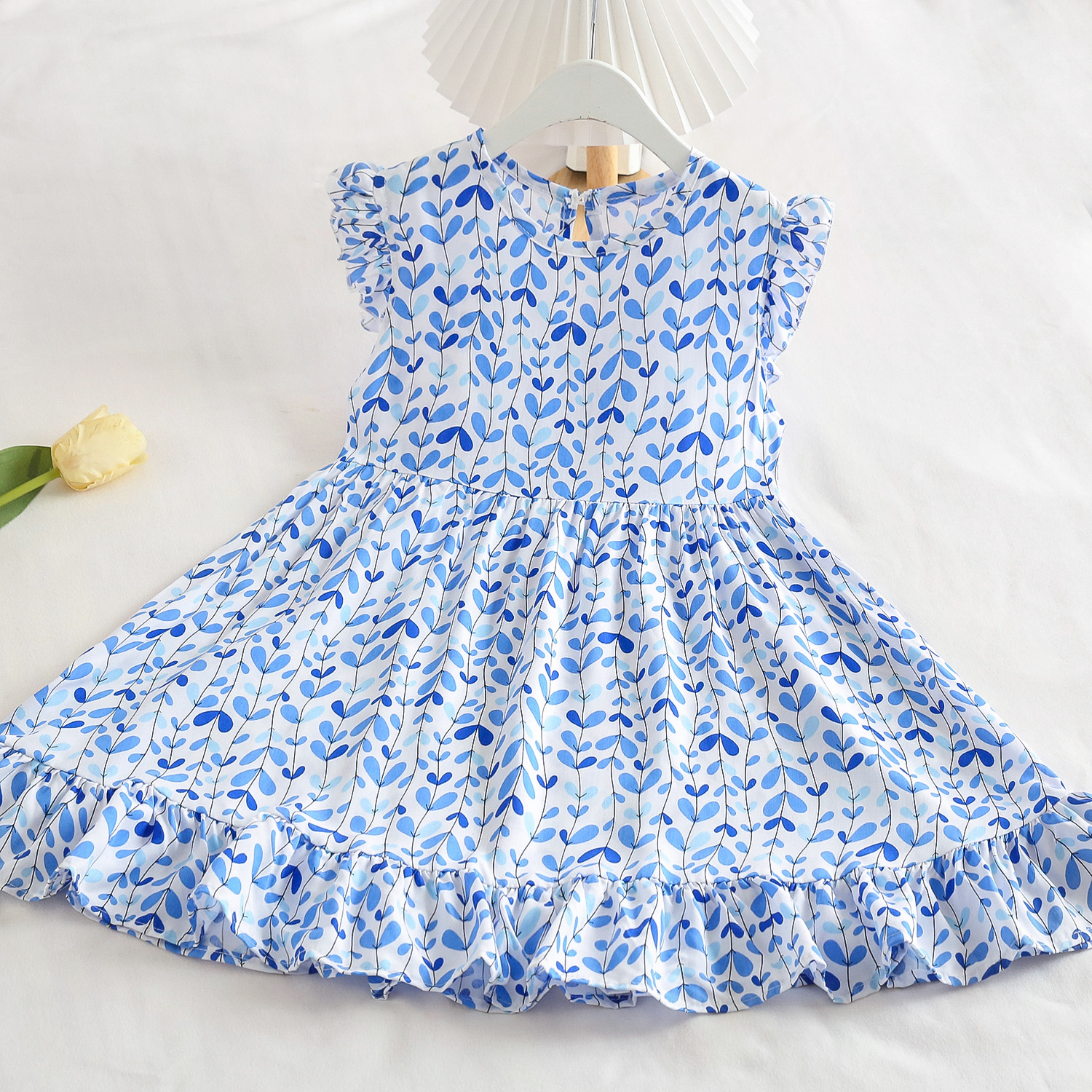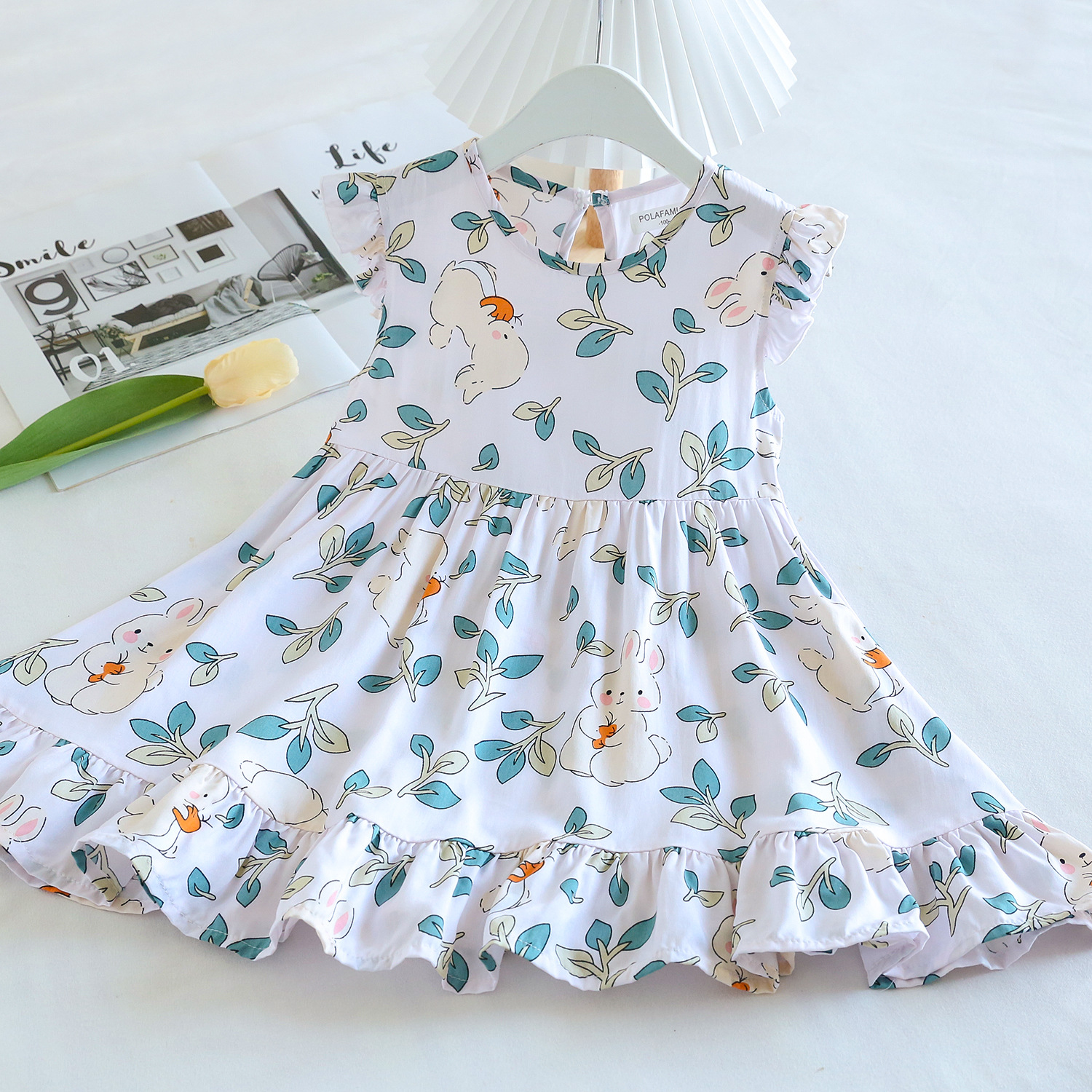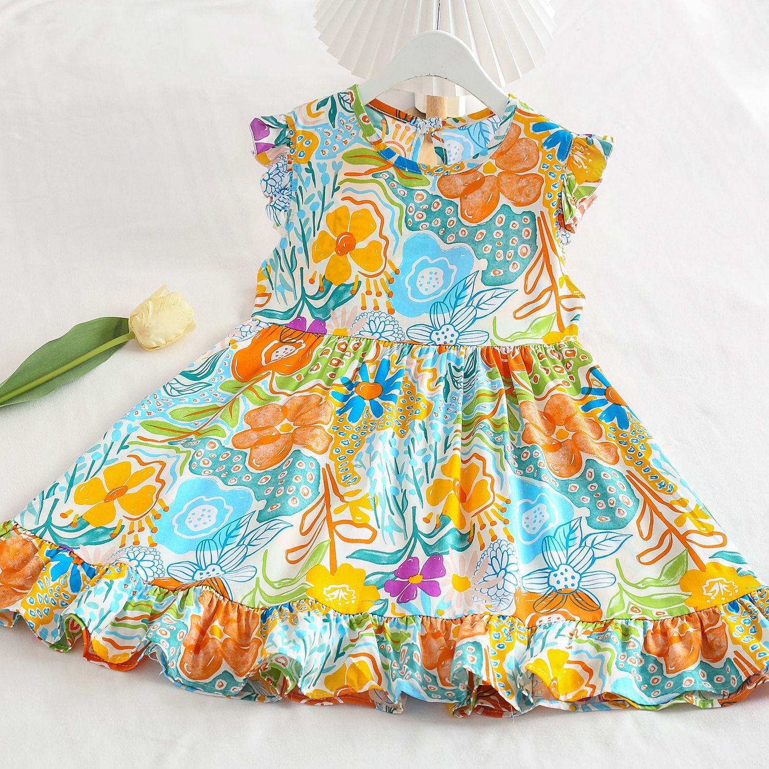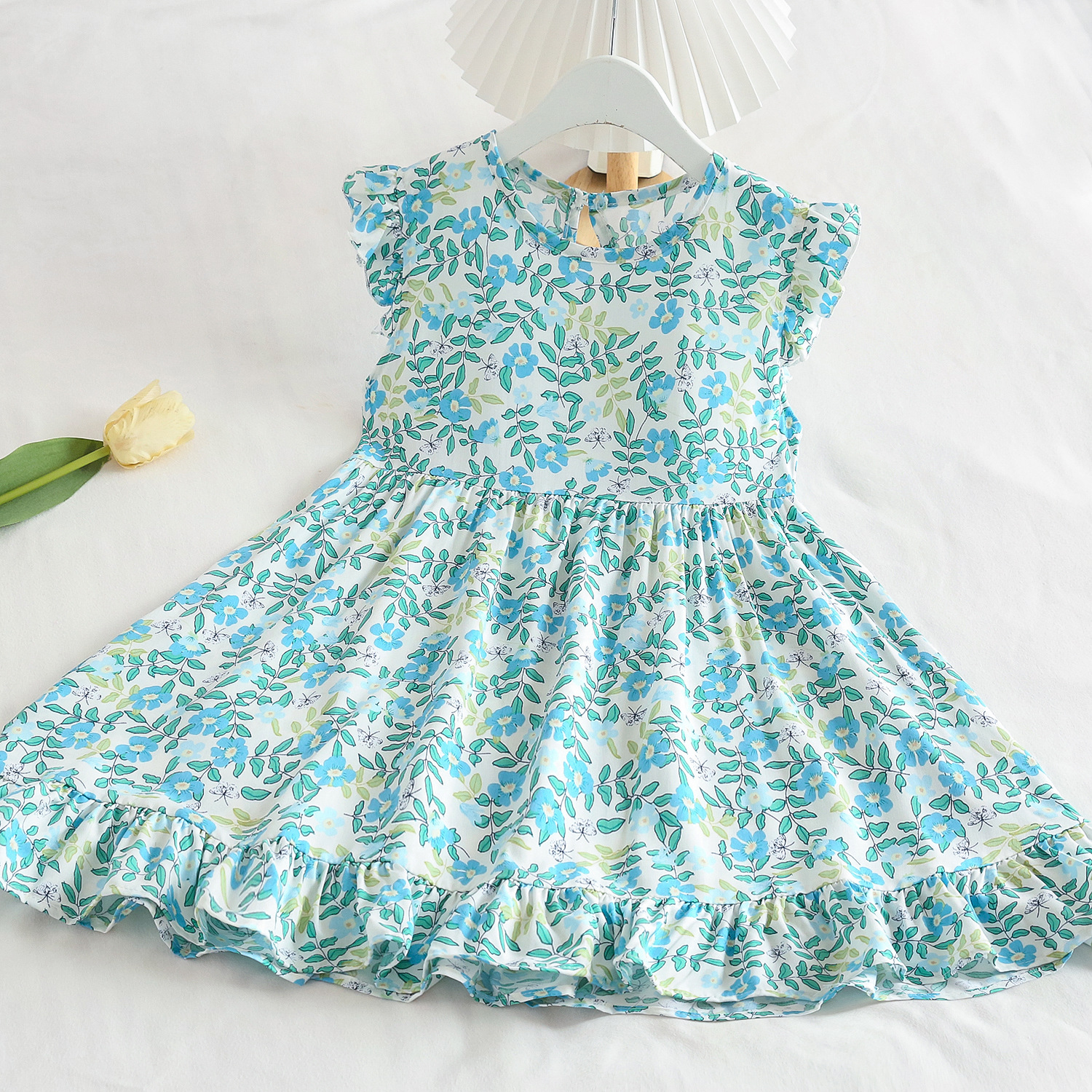 여름 소녀 코튼 두꺼운 원피스 대형 어린이 대형 스커트 플라잉 슬리브 공주 원피스 쿨 얇은 부드러운 베이비 비치 원피스