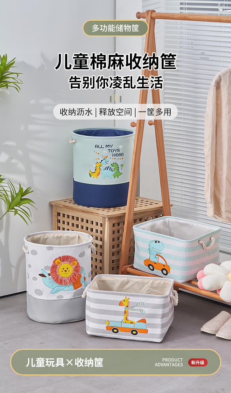 만화 장난감 저장 바구니 저장 배럴 대용량 봉제 장난감 원단 두꺼운 어린이 장난감 저장 상자 아기스토어 가기