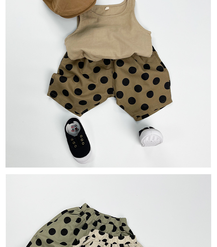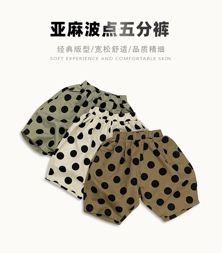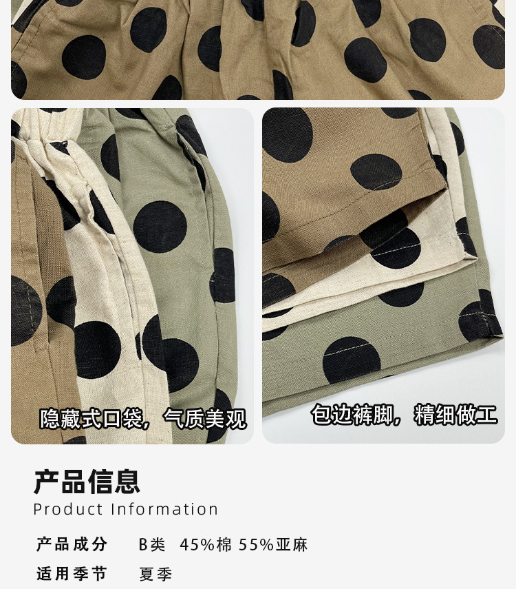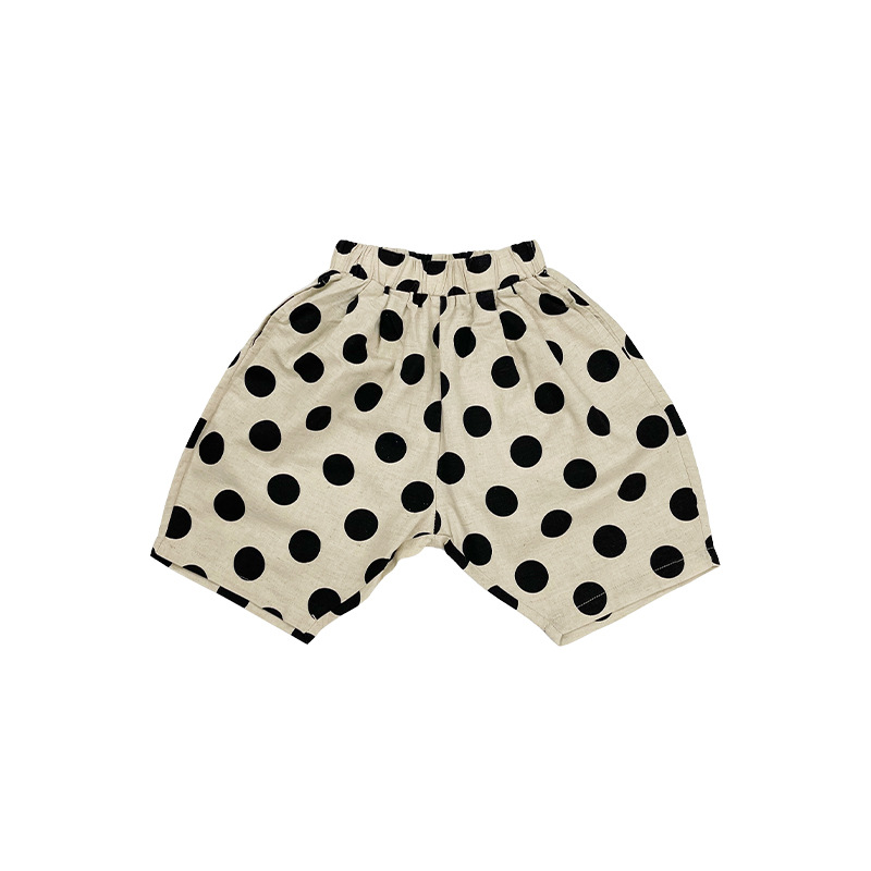 일본과 한국 스타일 폴로 도트 예술적 어린이 린넨 바지 느슨한 경량 블루머 소년 소녀 여름 어린이 착용 유행 바지스토어 가기