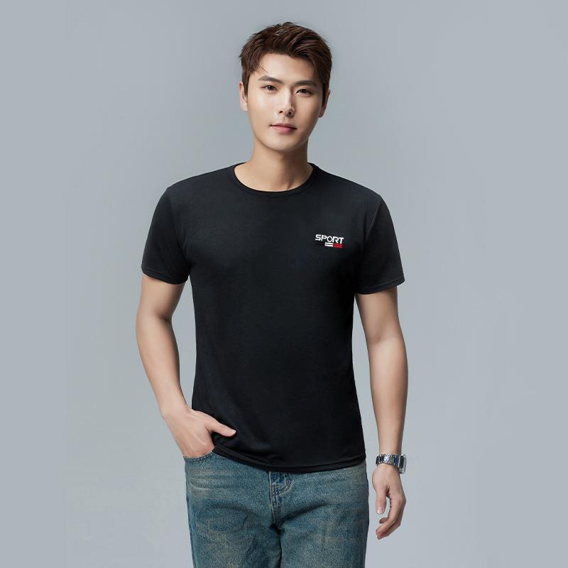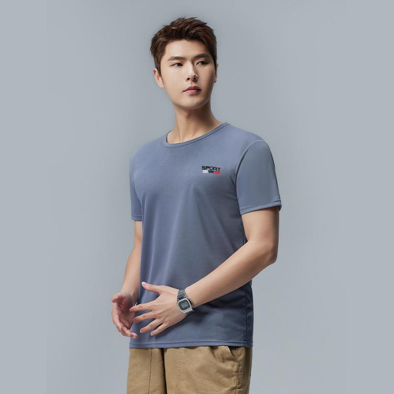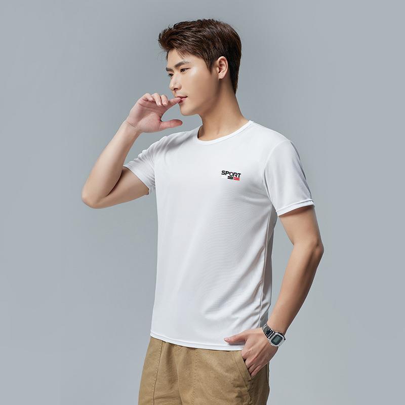 남성용 고급 에어컨 아이스 실크 티셔츠 얇은 통기성 퀵 드라이 쇼트 슬리브 하프 슬리브 티셔츠스토어 가기