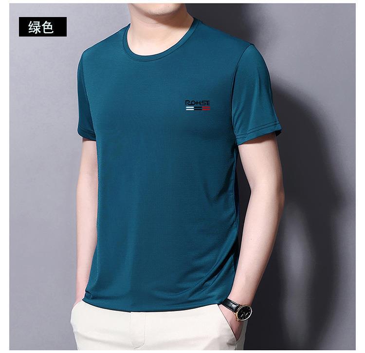 남성용 고급 에어컨 아이스 실크 티셔츠 얇은 통기성 퀵 드라이 쇼트 슬리브 하프 슬리브 티셔츠