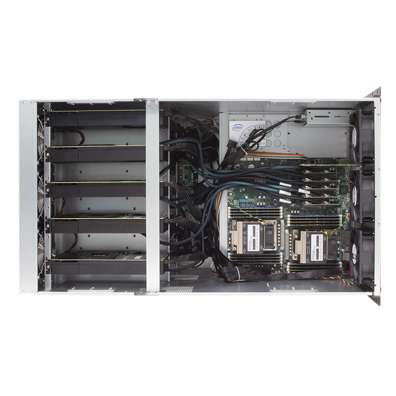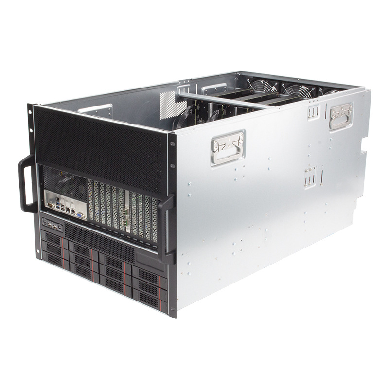 拓普龙 G-97810-P4 AI 推理机箱,支持10张3.5宽游戏版GPU卡,选配前置2*2.5寸SATA或者NVME背板/前置12个3.5寸硬盘位,标配12个12038B风扇位,具有良好的散热性能,机箱兼容12"*13"及以下尺寸的E-ATX/ATX主板,支持5个标准CRPS电源模块,4+1供电模式,稳定可靠。产品广泛应用于大数据、云计算、HPC、AI、渲染、深度学习、边缘计算等场景,在GPU运算性能、存储扩展能力、系统稳定性等方面表现出色,能最大程度的满足人工智能等新兴领域的开发与应用。