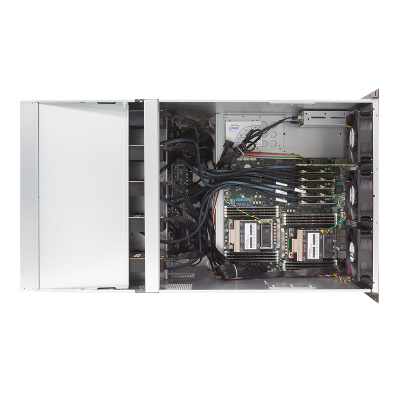标配内置12个12038热插拔风扇位(高风压/高风量)适用主板标准EATX以下主板/支持超微/技嘉/泰安(15.2*13.3)主板,主板至少需要带5个PCIE4.0 X16插槽或者10个PCIE4.0 X8