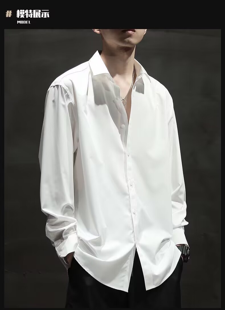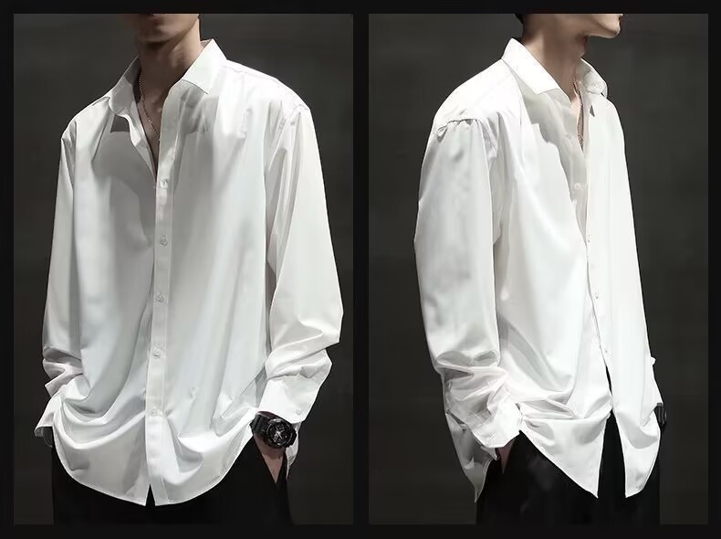아이스 실크 긴팔 셔츠 남자의 유행 여름 얇은 캐주얼 느슨한 하이 엔드 플러스 사이즈 뚱뚱한 검은 셔츠 재킷스토어 가기