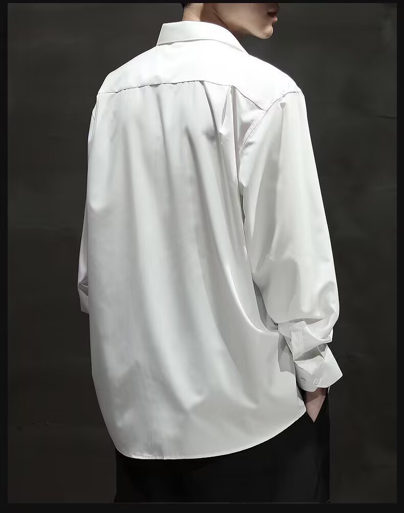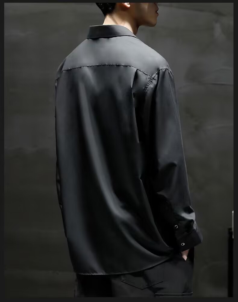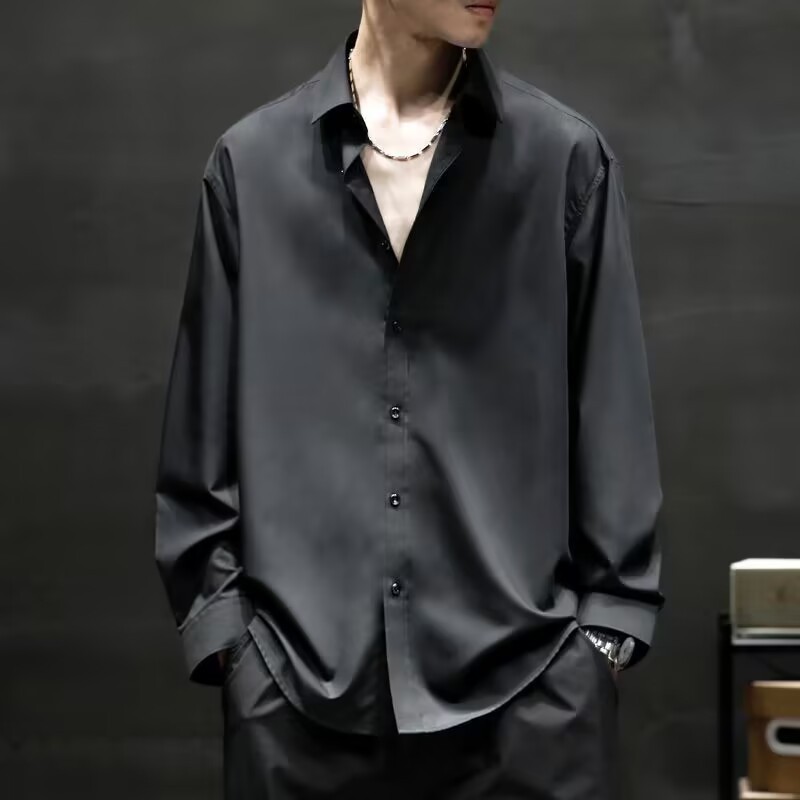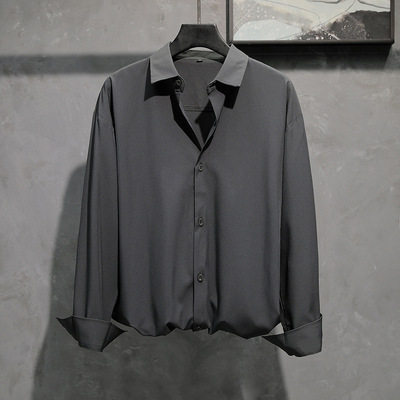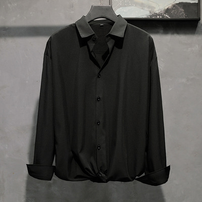 아이스 실크 긴팔 셔츠 남자의 유행 여름 얇은 캐주얼 느슨한 하이 엔드 플러스 사이즈 뚱뚱한 검은 셔츠 재킷