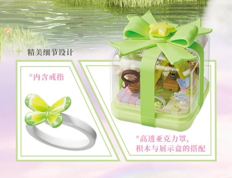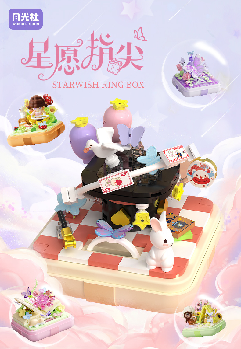 달빛 클럽 804417-22 스타 소원 손가락 끝 반지 상자 건물 블록 장난감 창조적 인 장식 커플 소녀 선물
