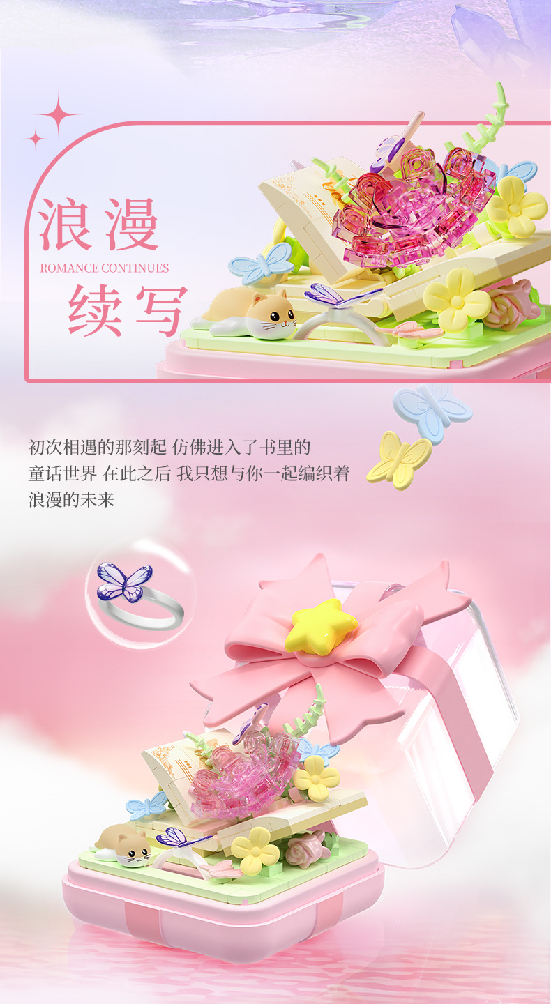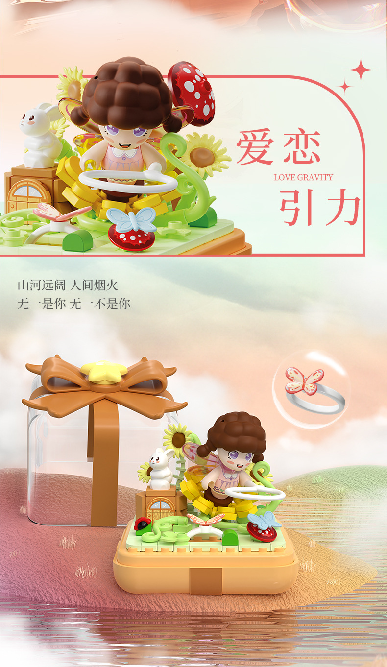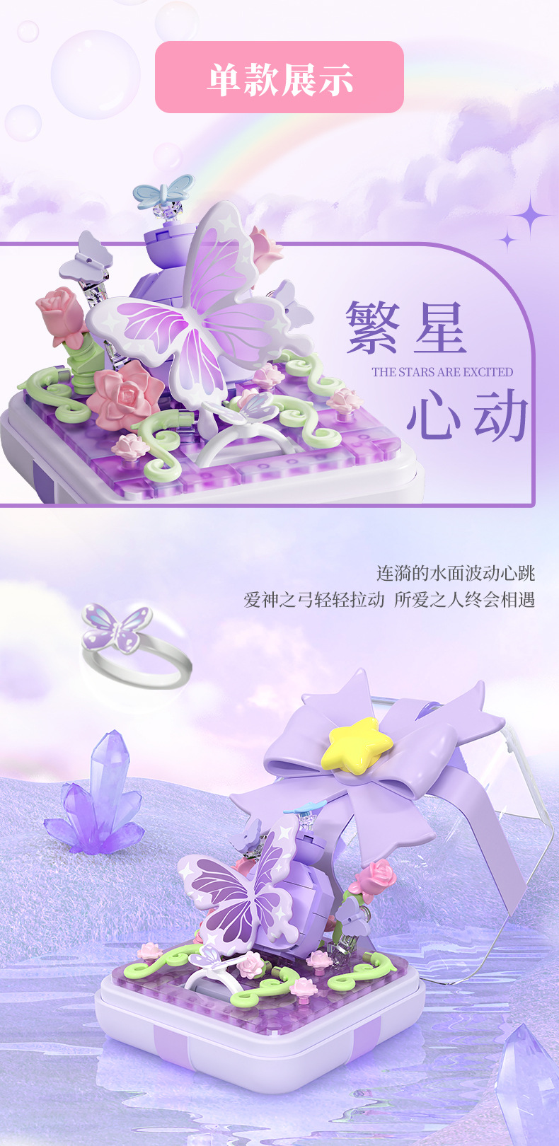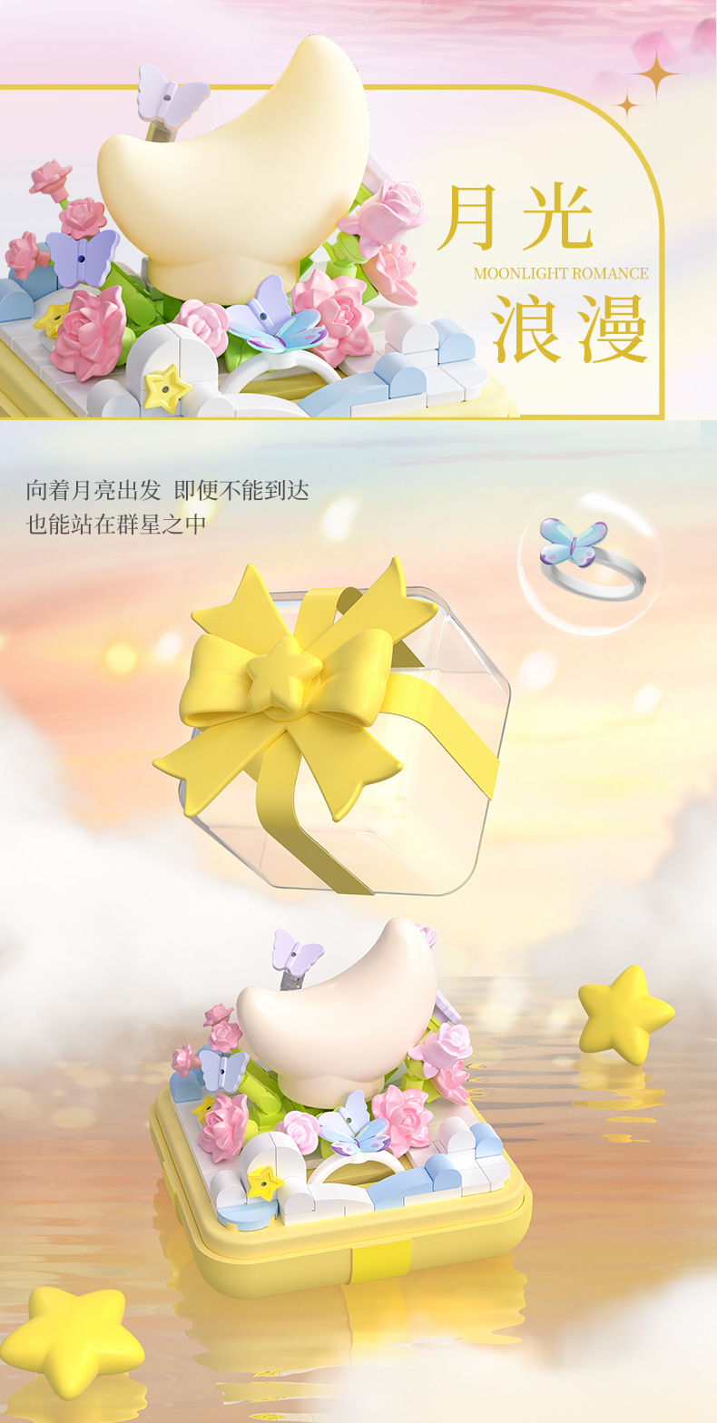 달빛 클럽 804417-22 스타 소원 손가락 끝 반지 상자 건물 블록 장난감 창조적 인 장식 커플 소녀 선물스토어 가기
