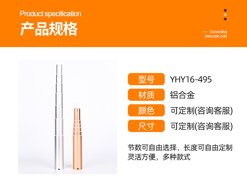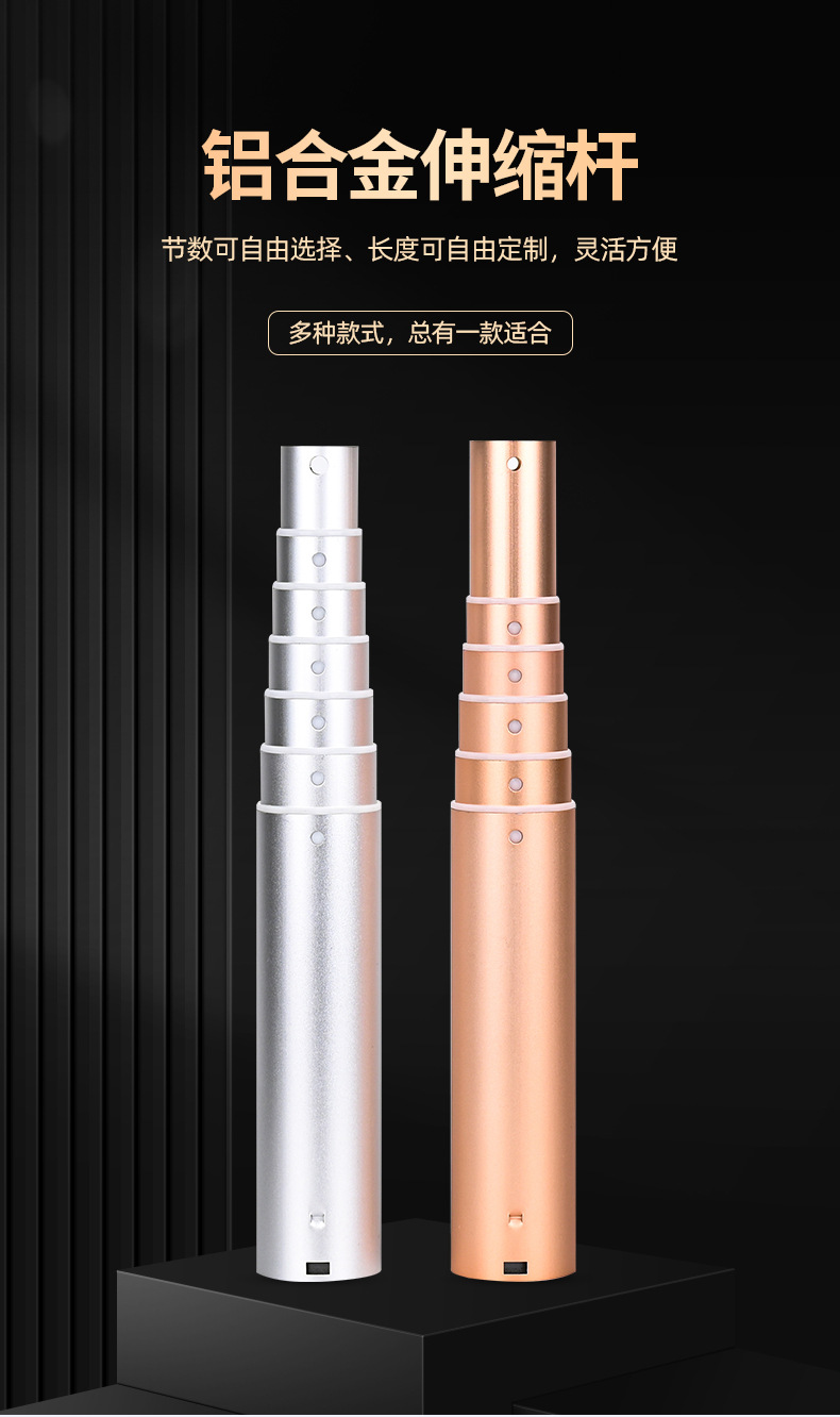 맞춤형 알루미늄 합금 셀카 연장 막대, 텔레스코픽 브래킷, 스포츠 카메라 부력 스틱, 다단 막대, 자유롭게 확장 및 수축 가능