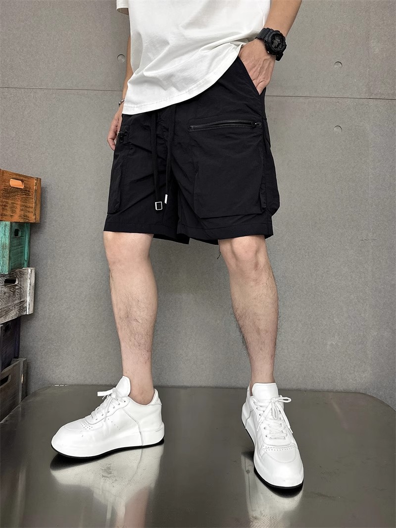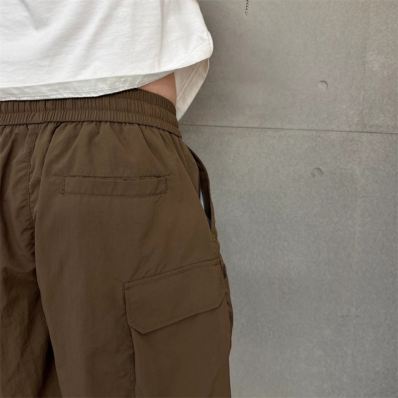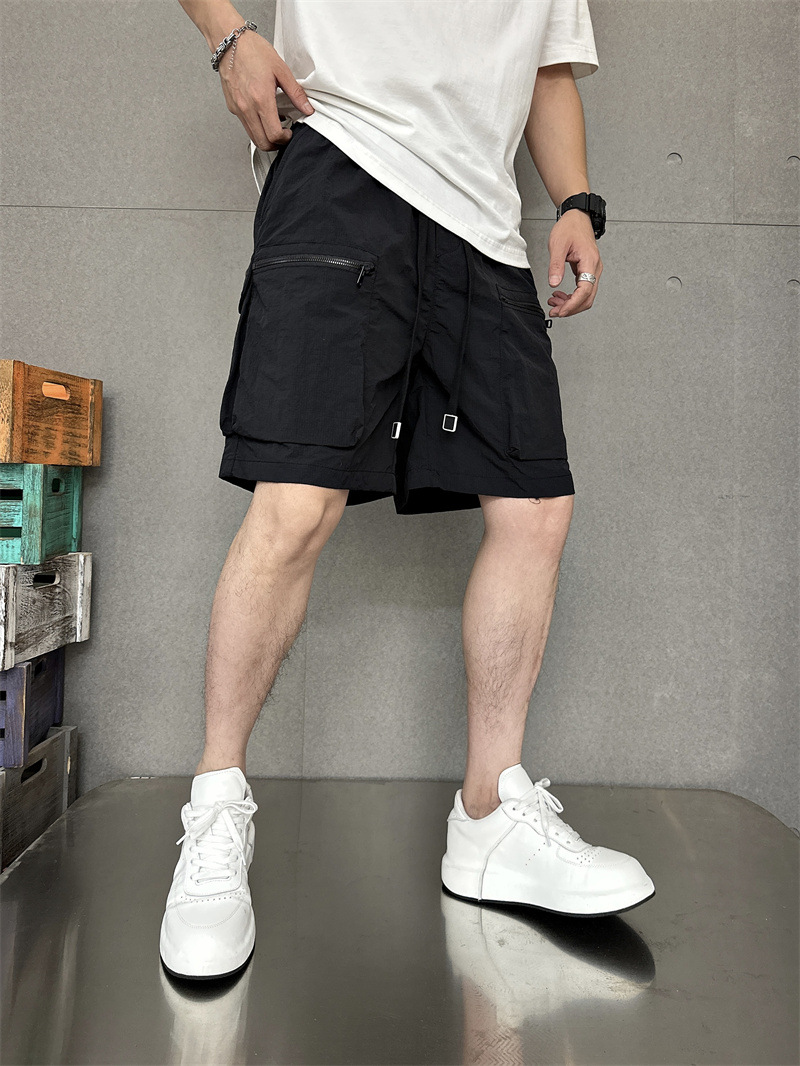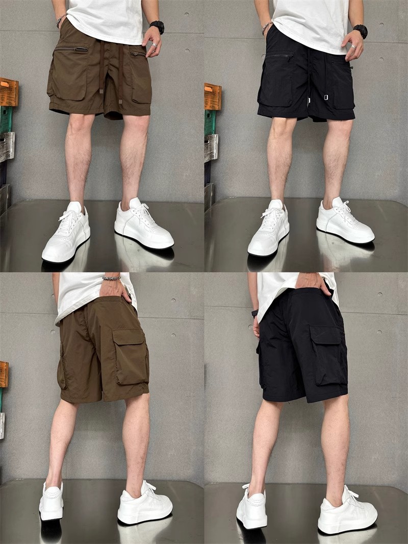 여름 얇은 빠른 건조 멀티 포켓 솔리드 컬러 느슨한 플러스 사이즈 툴링 반바지 남자 5 점 캐주얼 트렌디 브랜드 스포츠 바지스토어 가기