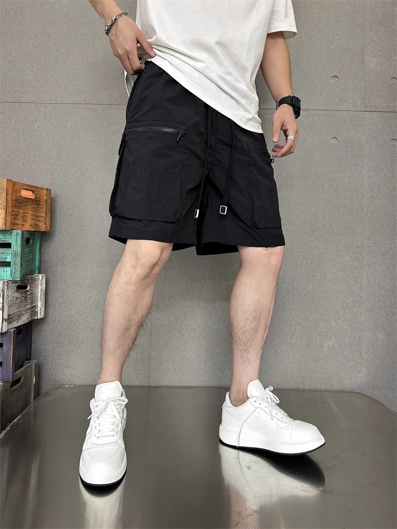 여름 얇은 빠른 건조 멀티 포켓 솔리드 컬러 느슨한 플러스 사이즈 툴링 반바지 남자 5 점 캐주얼 트렌디 브랜드 스포츠 바지