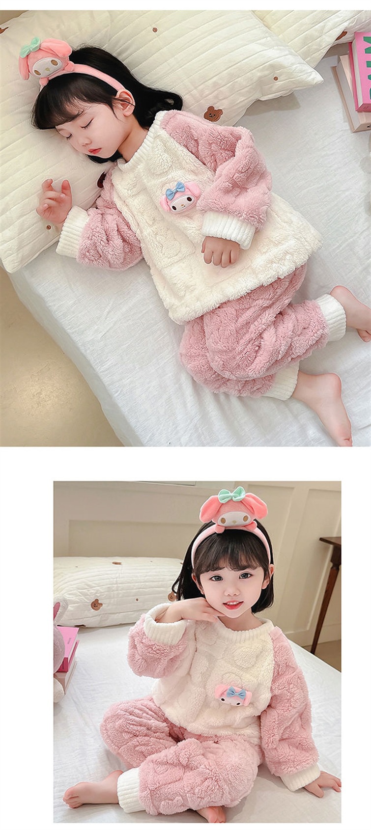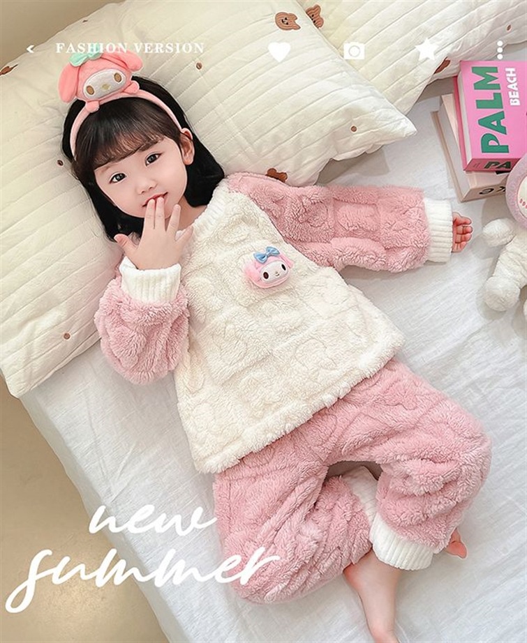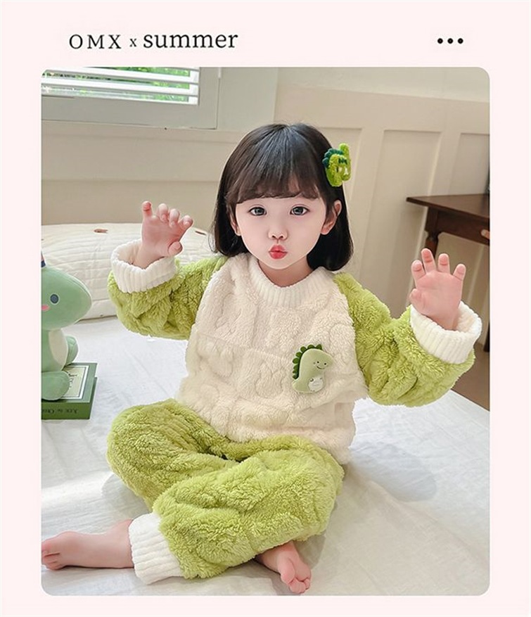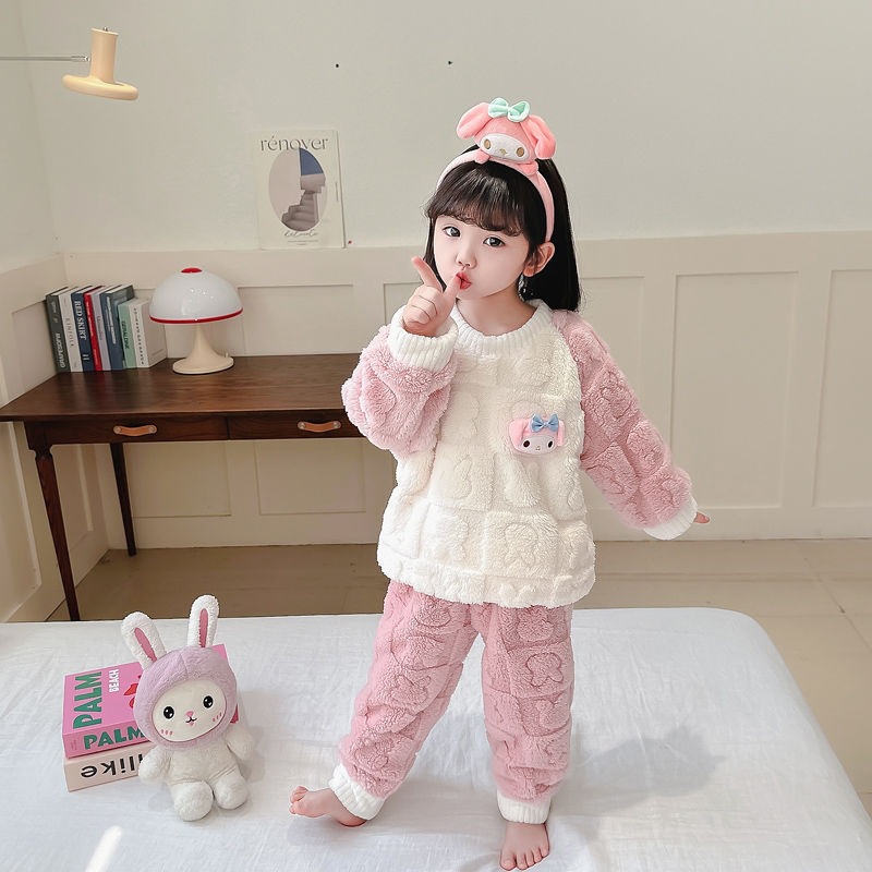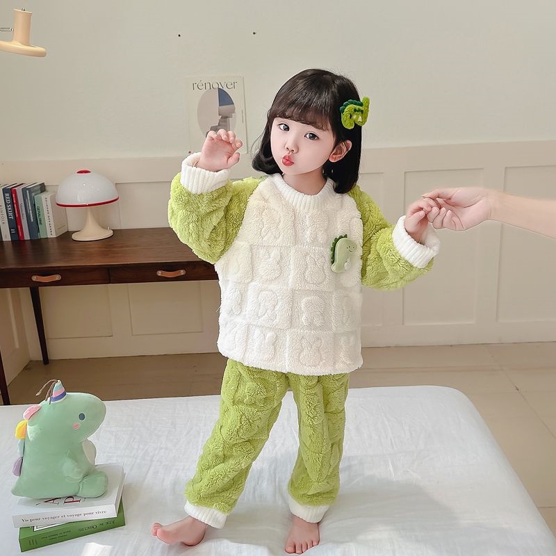 소녀 잠옷 가을과 겨울 산호 양털 세트 아기 소녀 따뜻한 집 옷 어린이 두꺼운 플란넬 겨울 옷스토어 가기