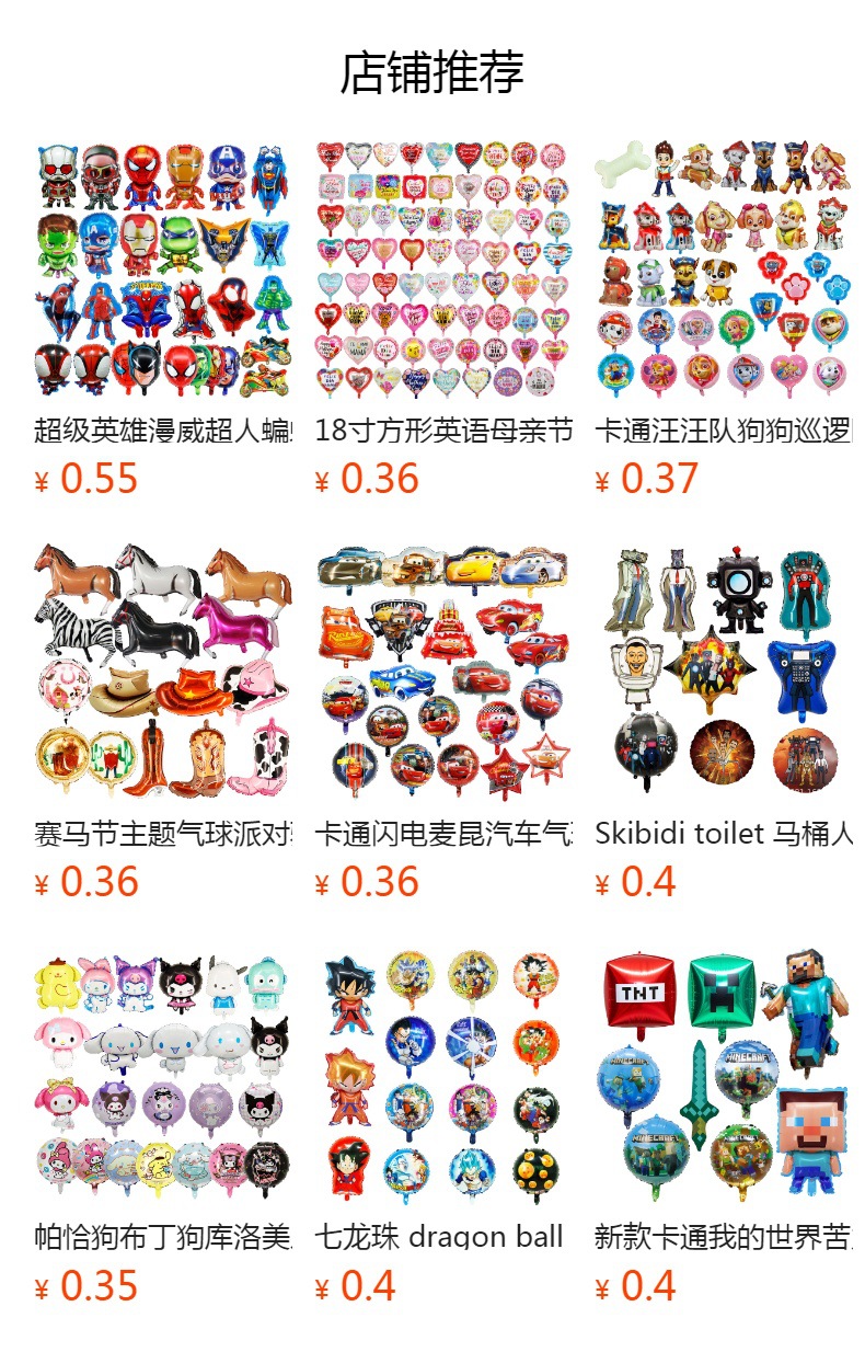 出售的气球均未充气,气球尺寸为手工测量,会有微小误差。