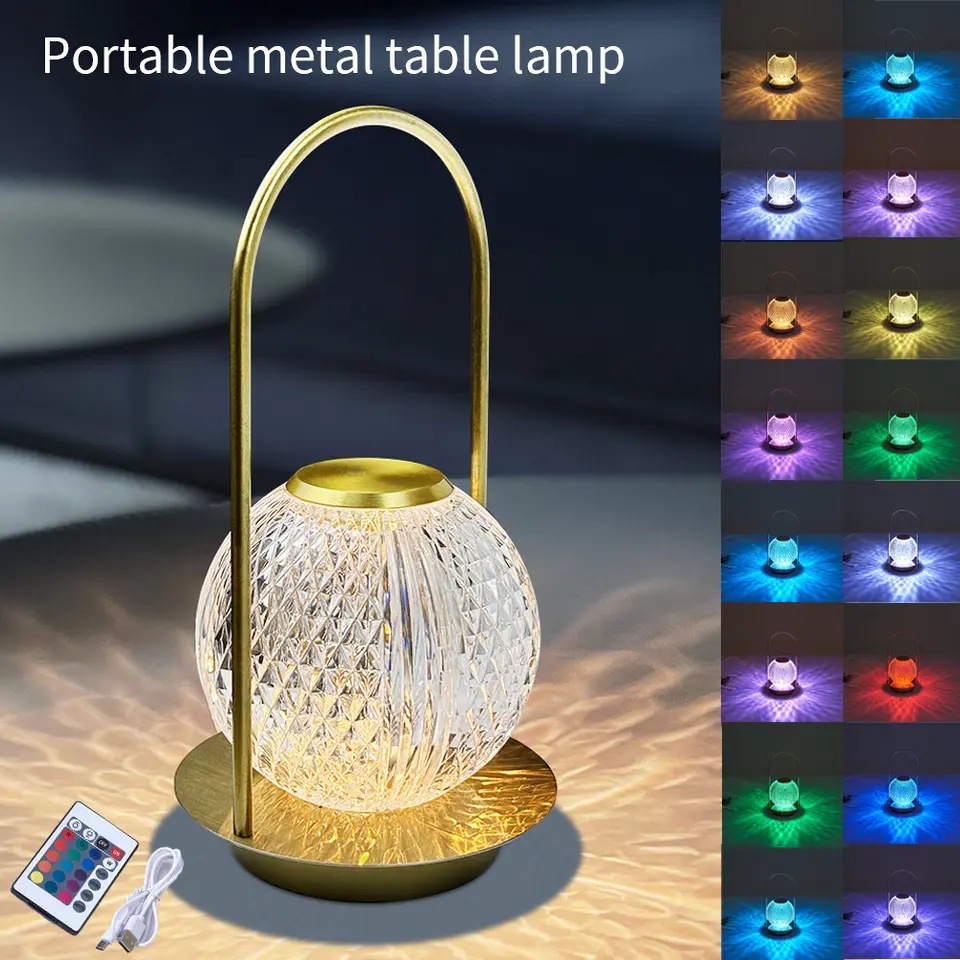 국경 간 LED 터치 충전식 테이블 램프 북유럽 바 레스토랑 금속 공 휴대용 충전식 테이블 램프 분위기 램프스토어 가기