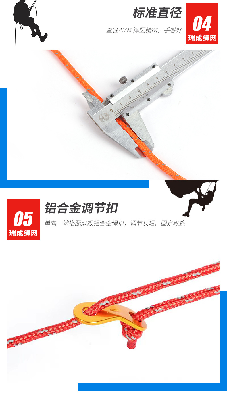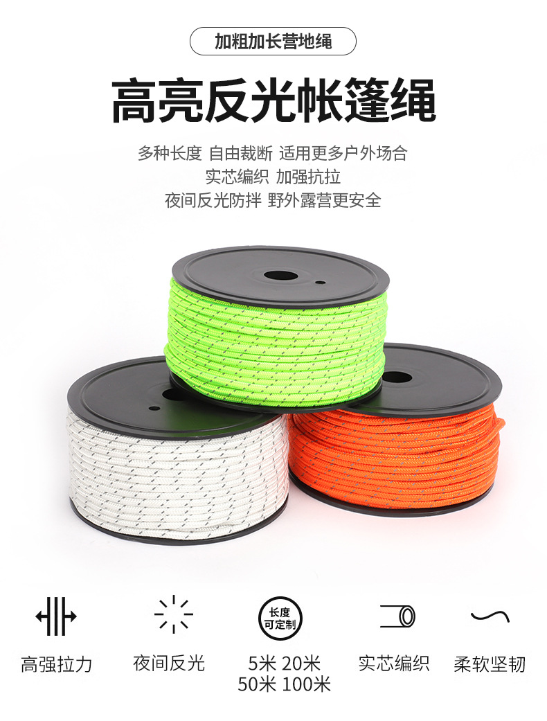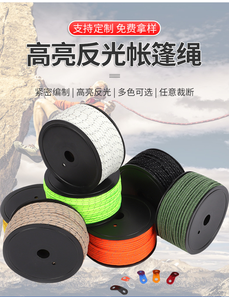원산지 공장 텐트 로프 6MM 두꺼운 고광택 천막 방풍 로프 다기능 묶음 로프 대량 구매 시 가격 우수