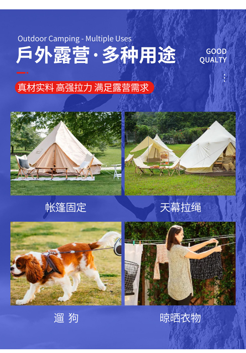 원산지 공장 텐트 로프 6MM 두꺼운 고광택 천막 방풍 로프 다기능 묶음 로프 대량 구매 시 가격 우수스토어 가기
