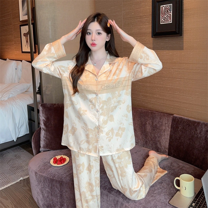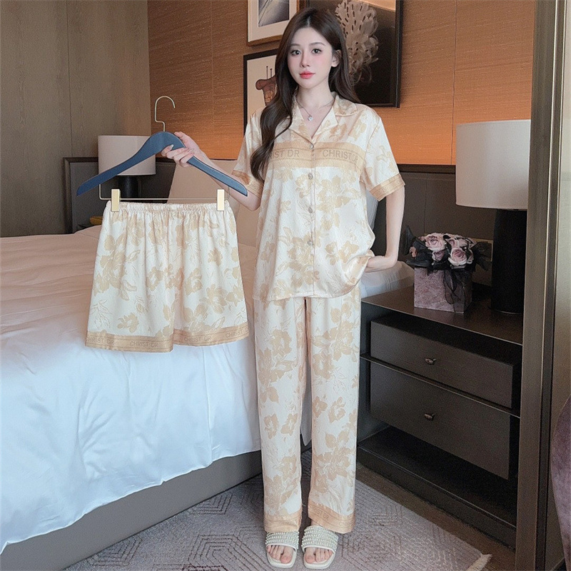 가벼운 럭셔리 잠옷 여성의 봄과 여름 새로운 얼음과 눈 실크 하이 엔드 세트 황금 나비 하이 엔드 크로스 국경 홈 옷 2024스토어 가기