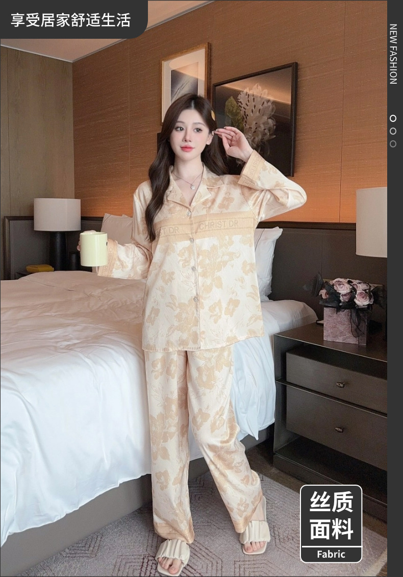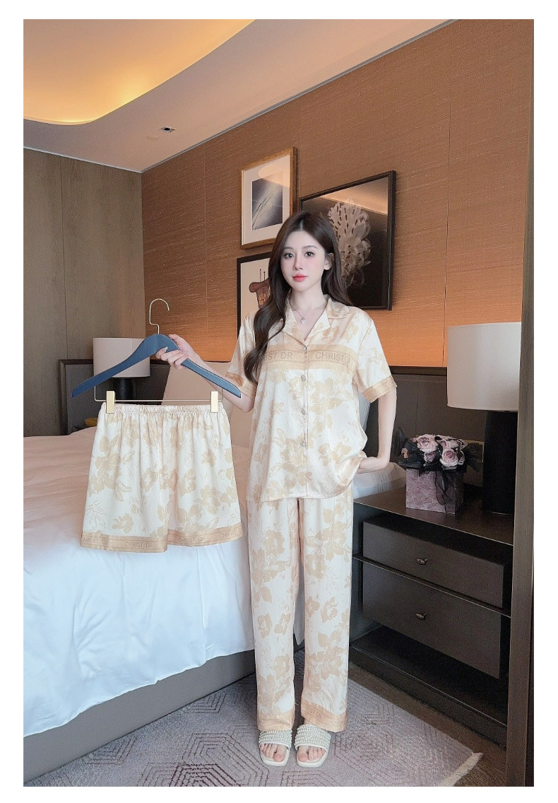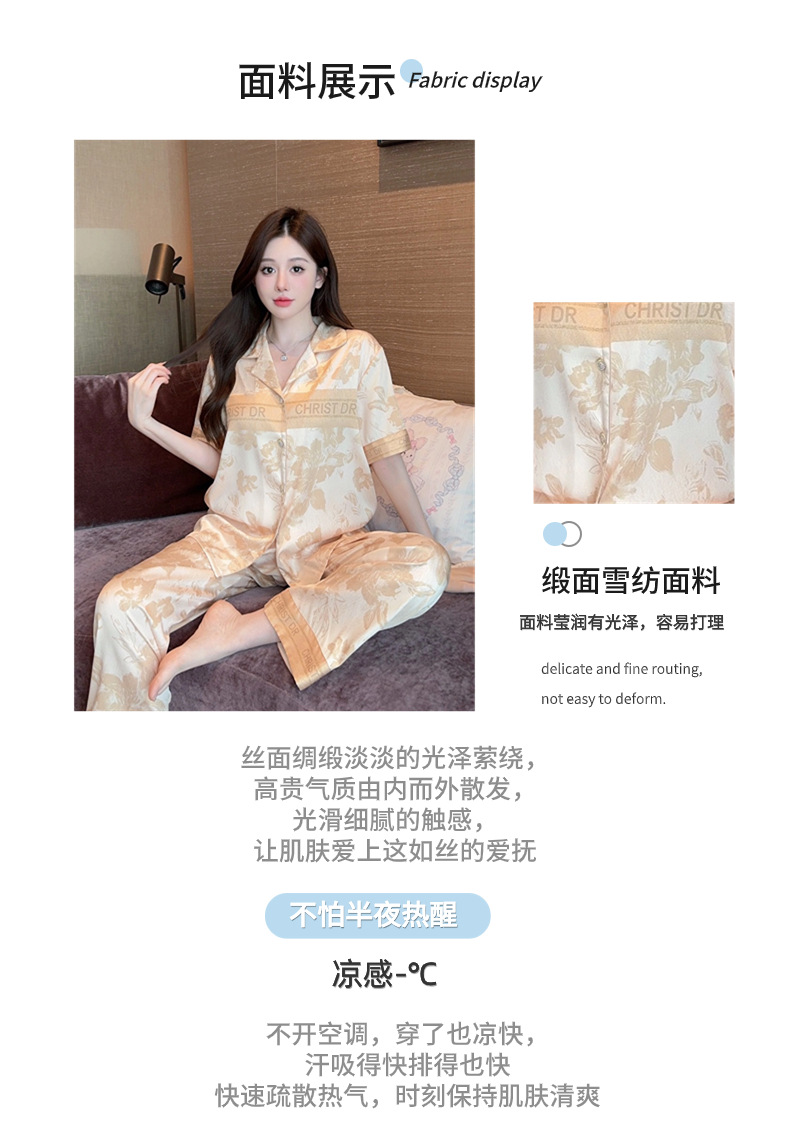 가벼운 럭셔리 잠옷 여성의 봄과 여름 새로운 얼음과 눈 실크 하이 엔드 세트 황금 나비 하이 엔드 크로스 국경 홈 옷 2024