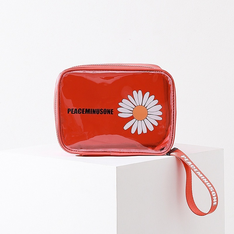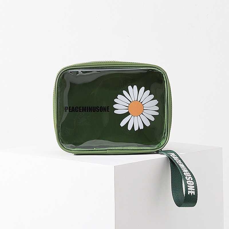 작은 데이지 화장품 가방 여성의 투명한 대용량 건조하고 젖은 별도의 여행 세척 가방 휴대용 PVC 방수 보관 가방