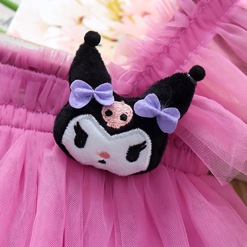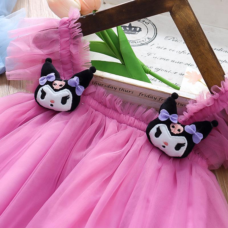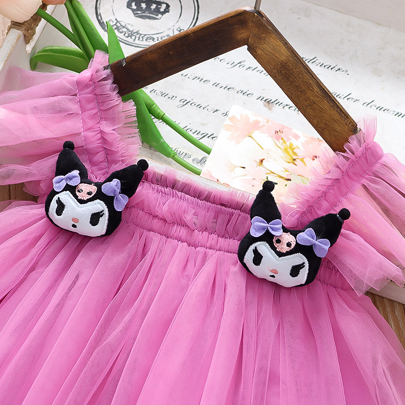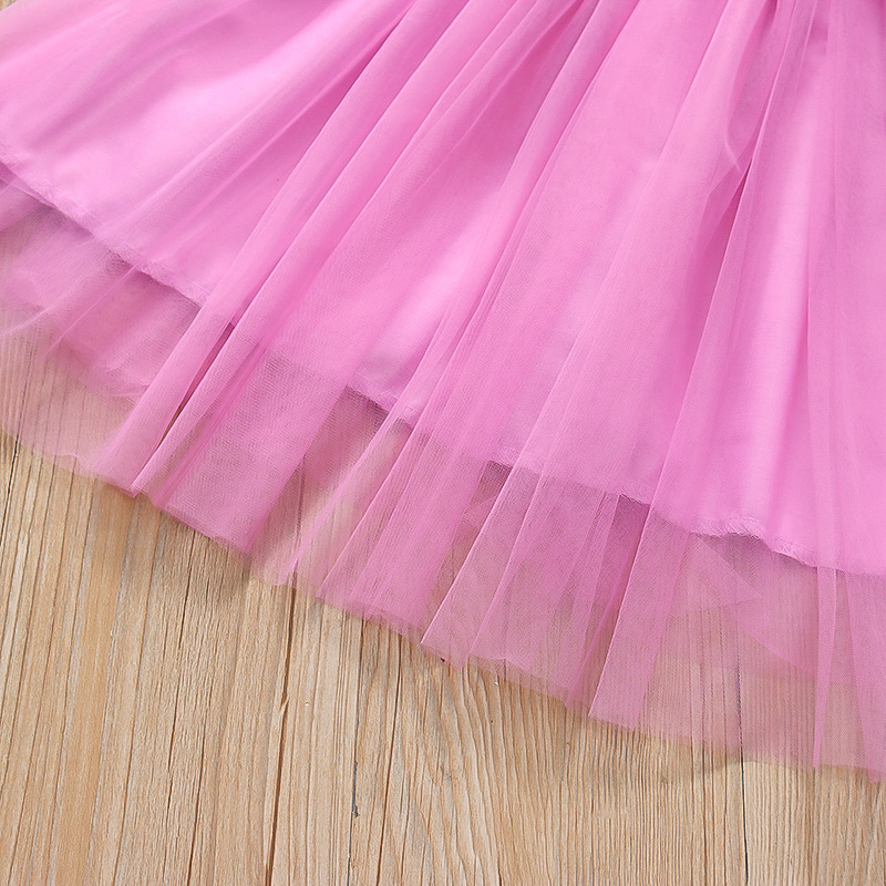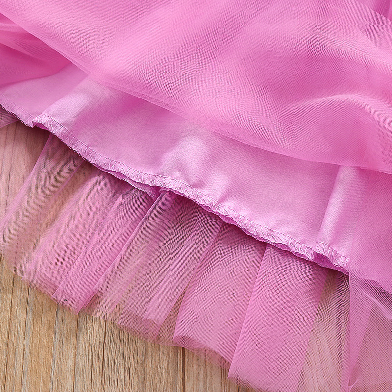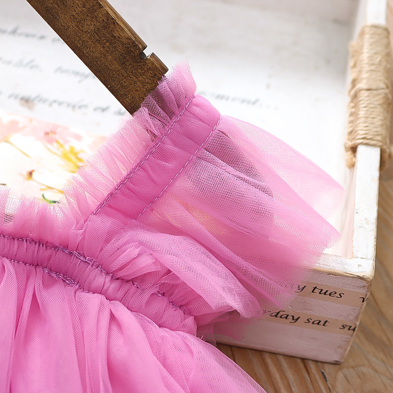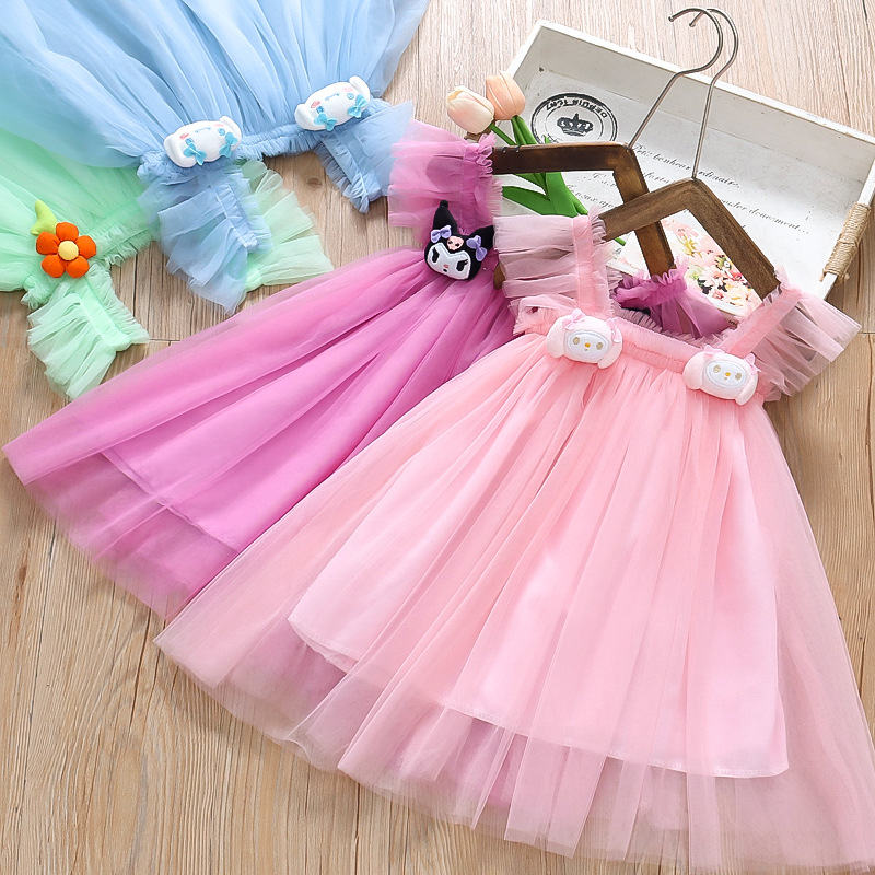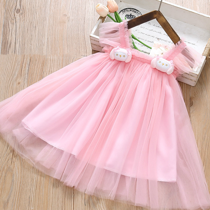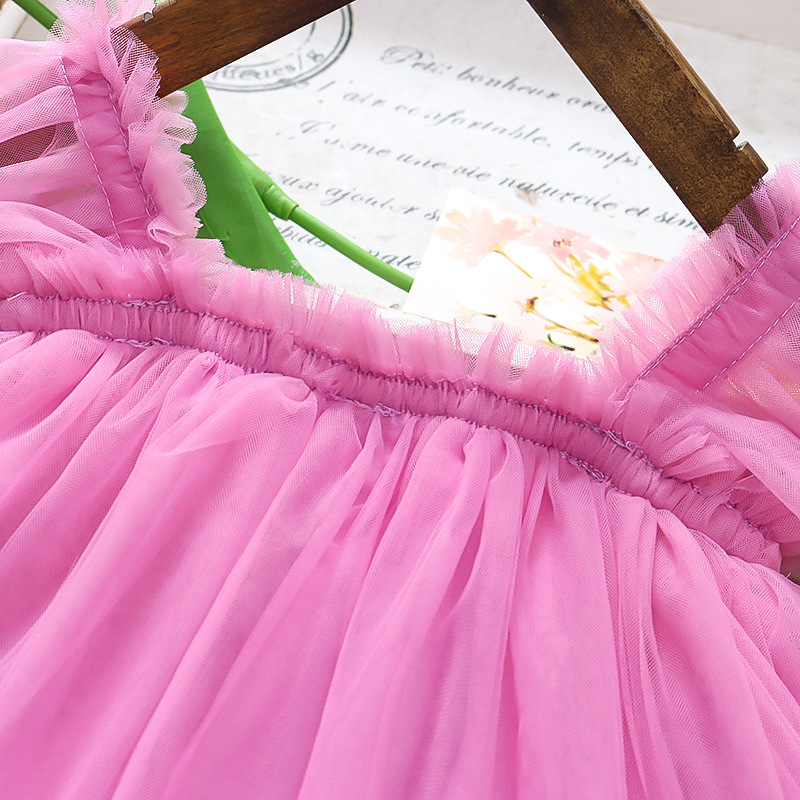 2025 새로운 스타일 작은 플라잉 슬리브 소녀 메쉬 스커트 드레스 유행 여름 얇은 서스펜더 공주 메쉬 스커트