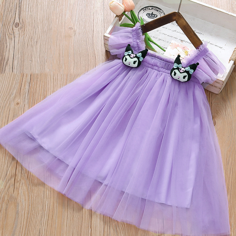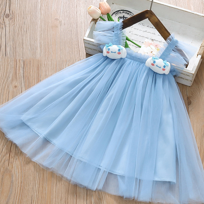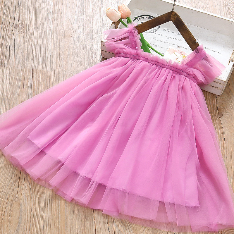 2025 새로운 스타일 작은 플라잉 슬리브 소녀 메쉬 스커트 드레스 유행 여름 얇은 서스펜더 공주 메쉬 스커트스토어 가기
