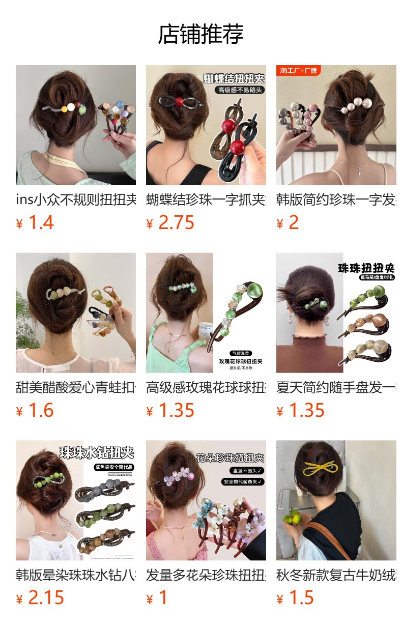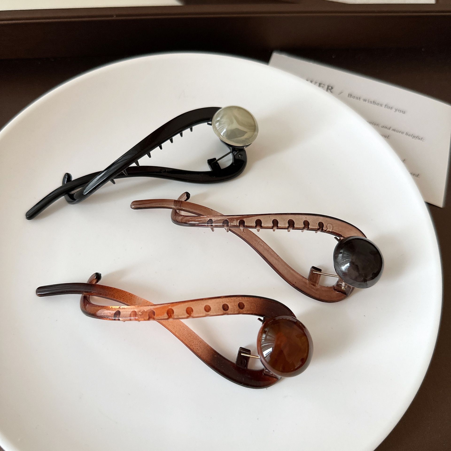 간단한 다크 브라운 진주 잡아 클립 여성의 2024 새로운 스타일 꼬인 머리핀 머리 상어 클립 헤어 액세서리스토어 가기