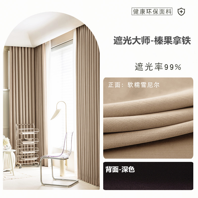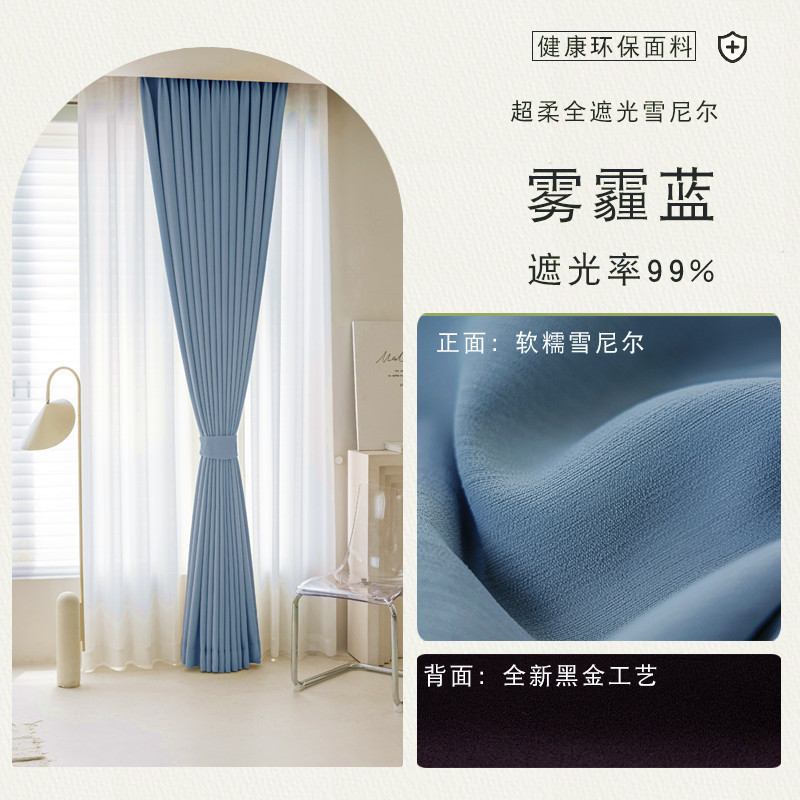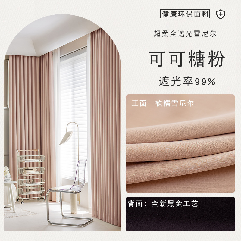 전체 음영 커튼 거실 침실 단열 태양 보호 현대 단순 레드 고급 Chenille Shaoxing Keqiao