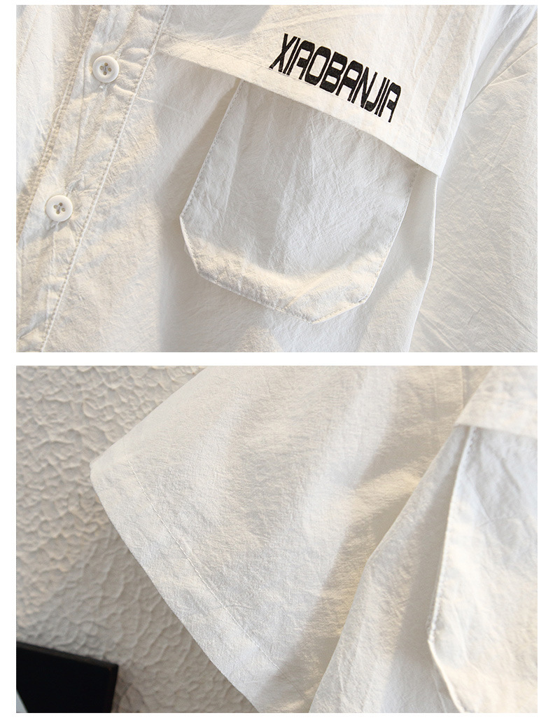 남자들의 여름 반팔 셔츠 아카데미 스타일 2024 새로운 유행 시원하고 잘 생긴 순수한 흰색 캐주얼 코튼 셔츠 탑 프라이드 스트리트스토어 가기