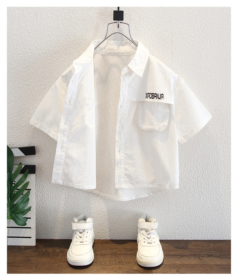 남자들의 여름 반팔 셔츠 아카데미 스타일 2024 새로운 유행 시원하고 잘 생긴 순수한 흰색 캐주얼 코튼 셔츠 탑 프라이드 스트리트