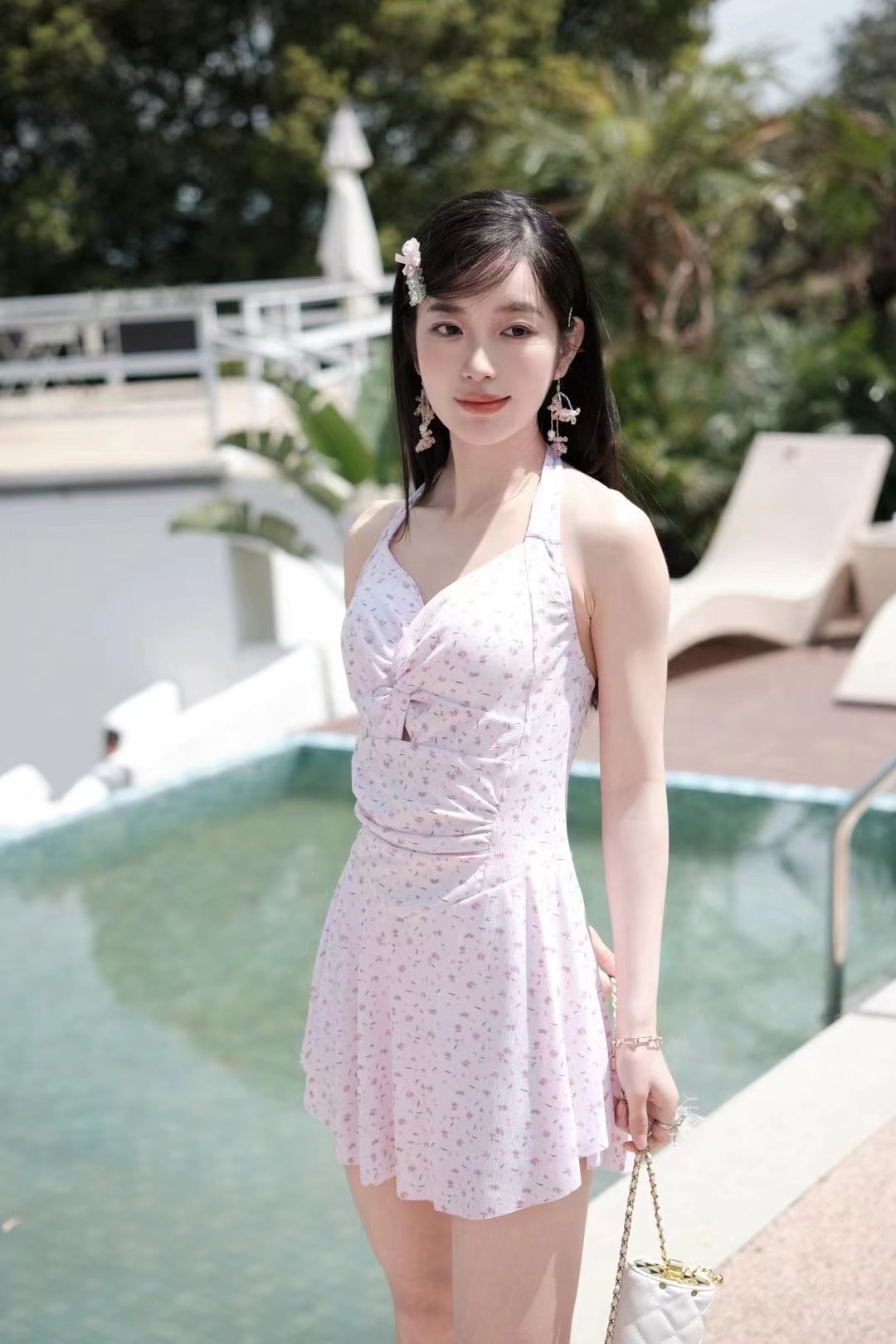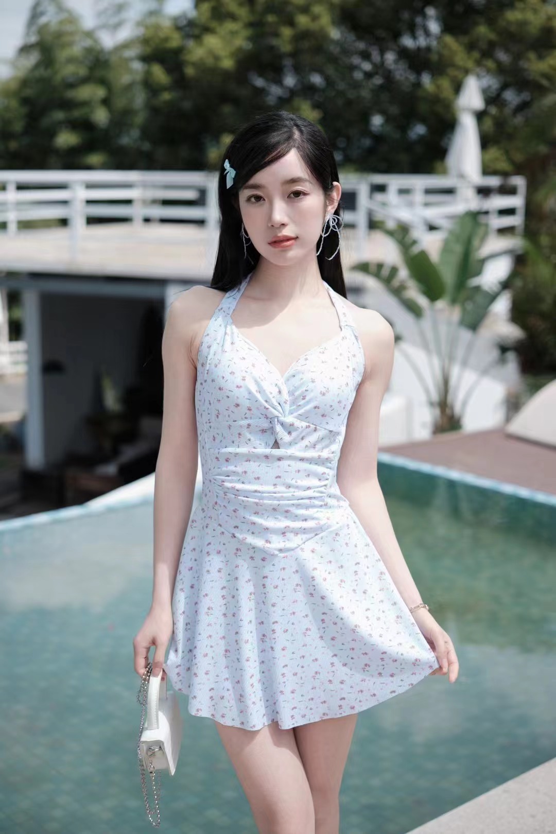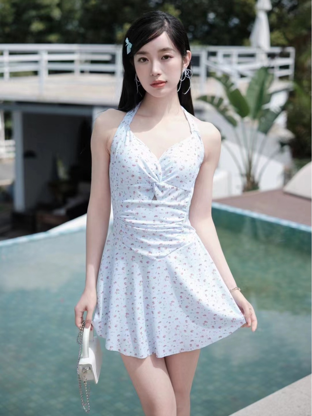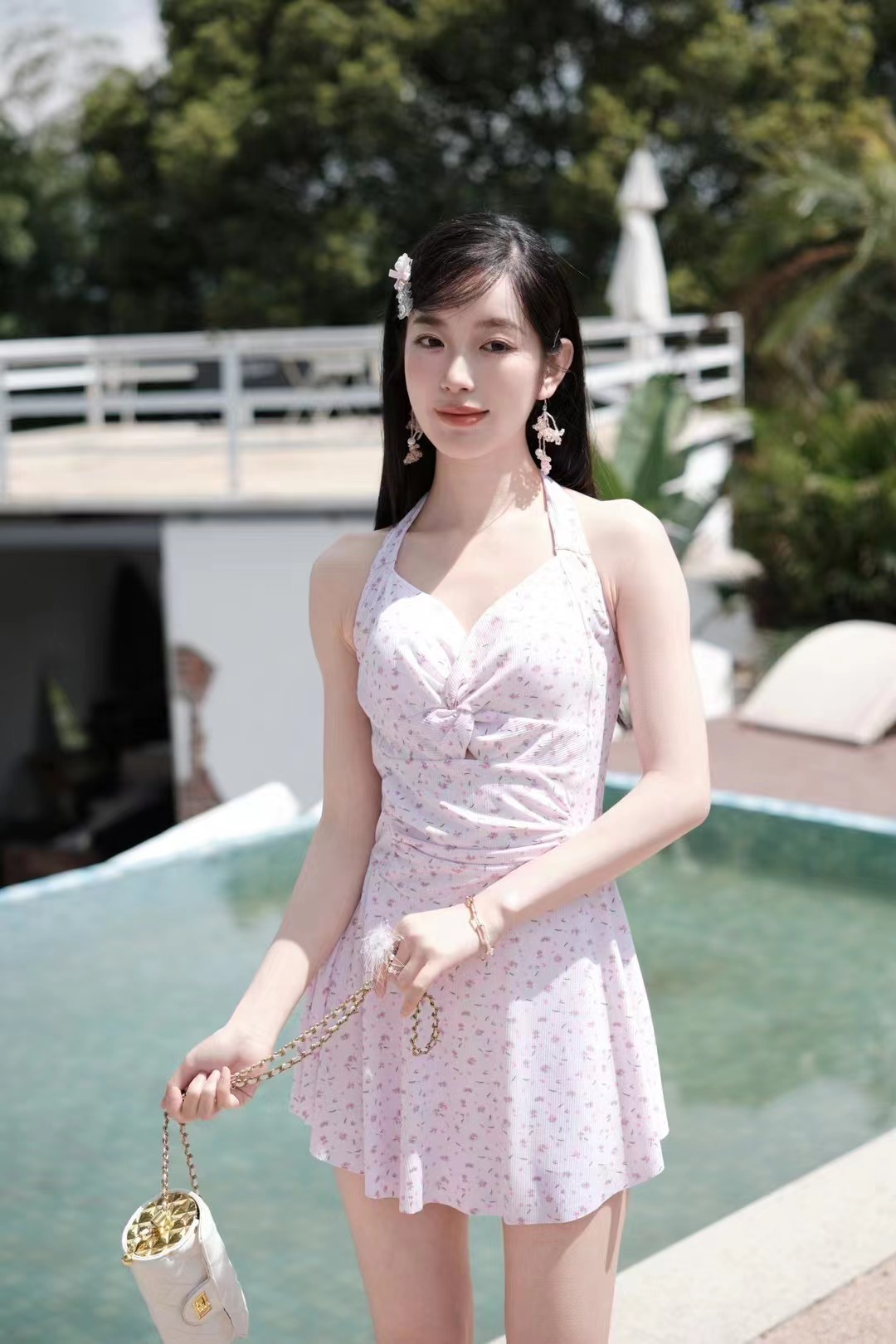 여성 수영복 2024 신상 홀터넥 수영복 작은 가슴 모아주는 원피스 스타일 여성용 해변 휴가 수영복