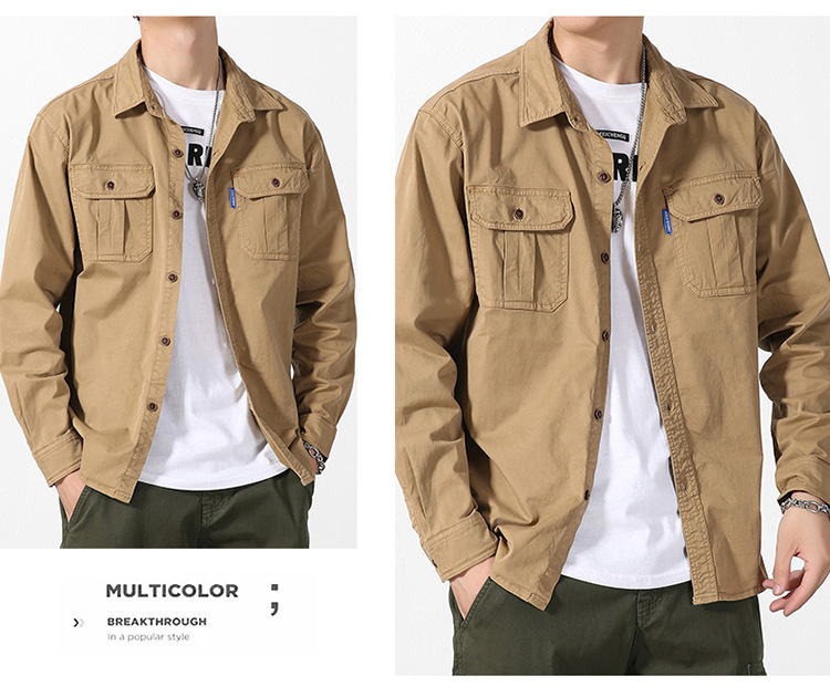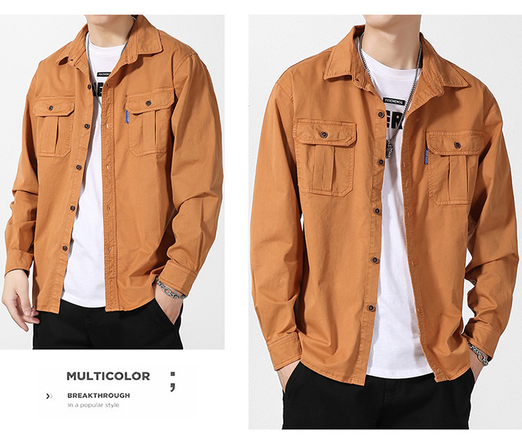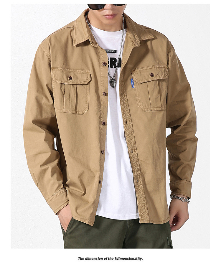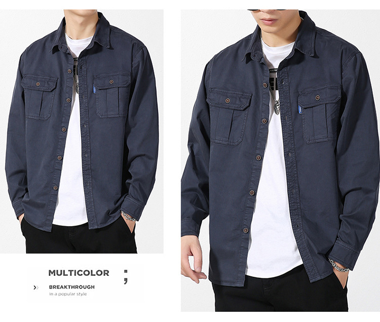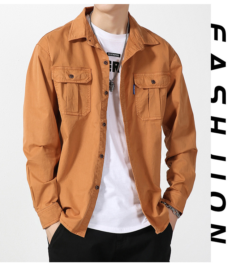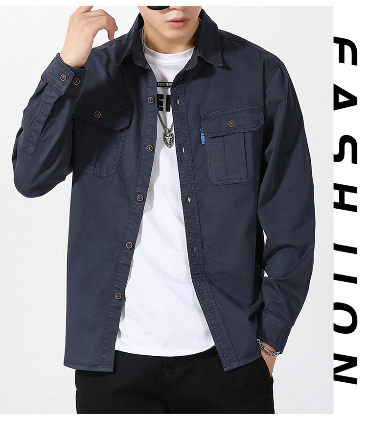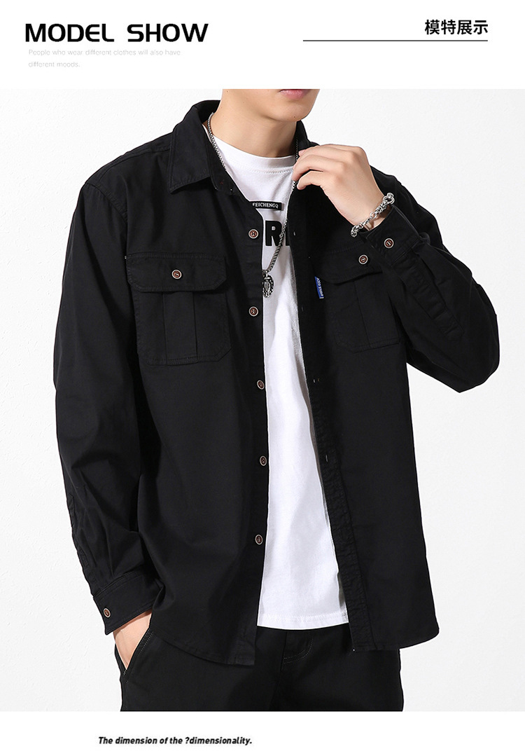 작업복 셔츠 남성 가을 얇은 긴팔 재킷 캐주얼 루즈 탑 셔츠 크로스-테두리스토어 가기