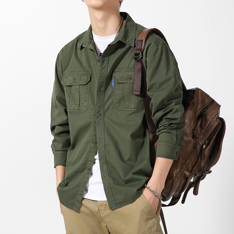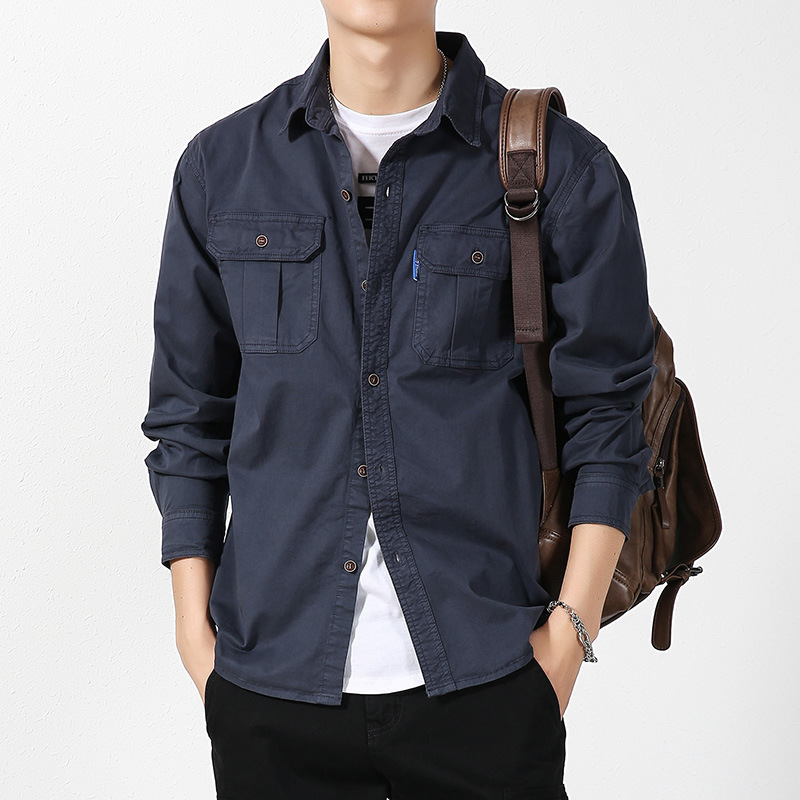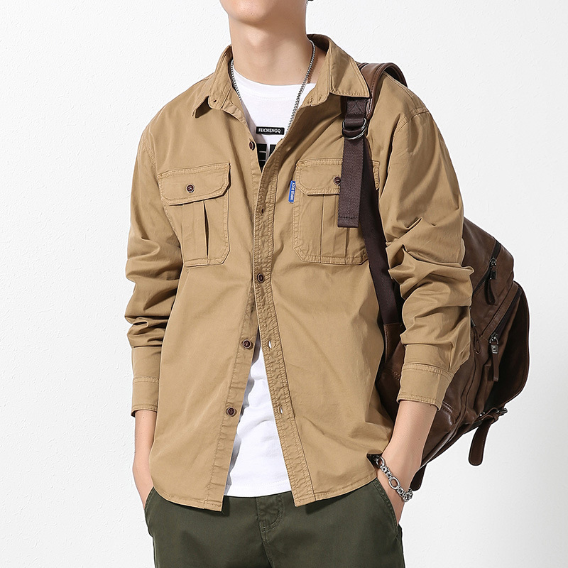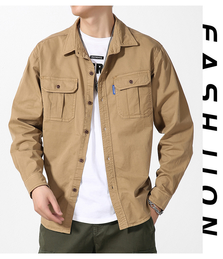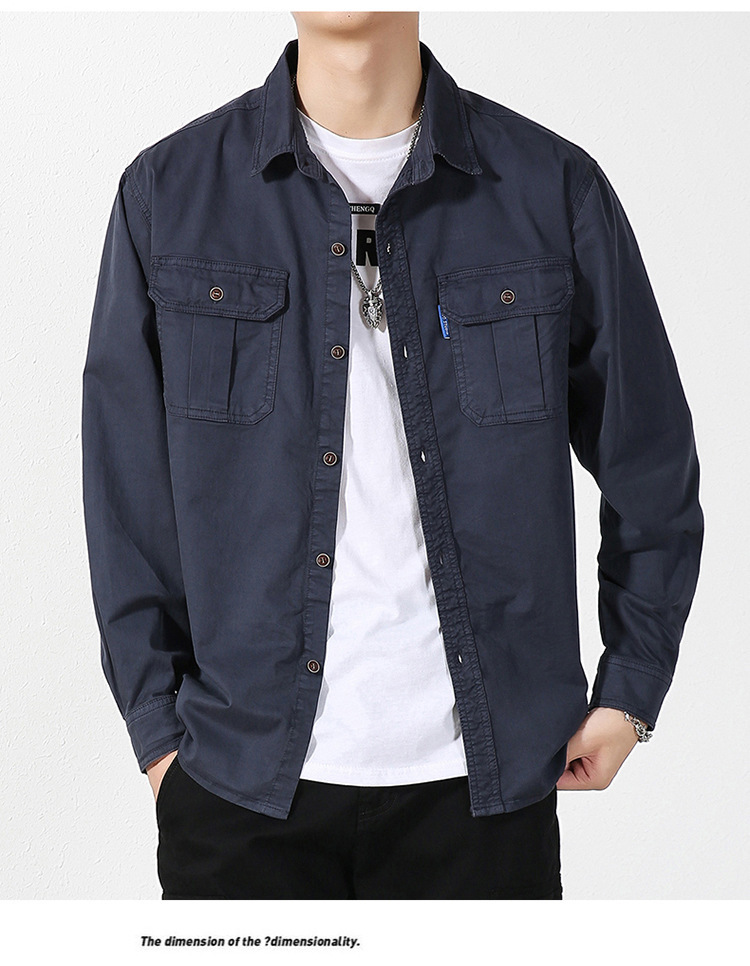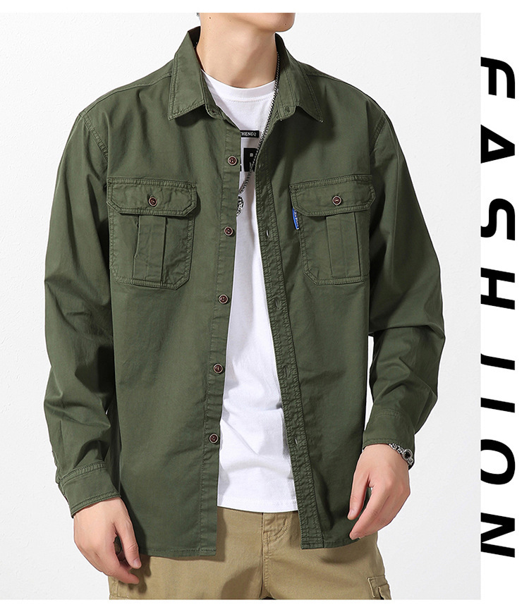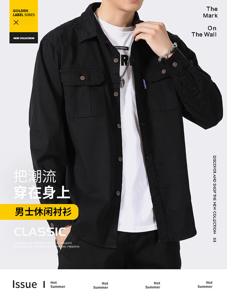 작업복 셔츠 남성 가을 얇은 긴팔 재킷 캐주얼 루즈 탑 셔츠 크로스-테두리스토어 가기