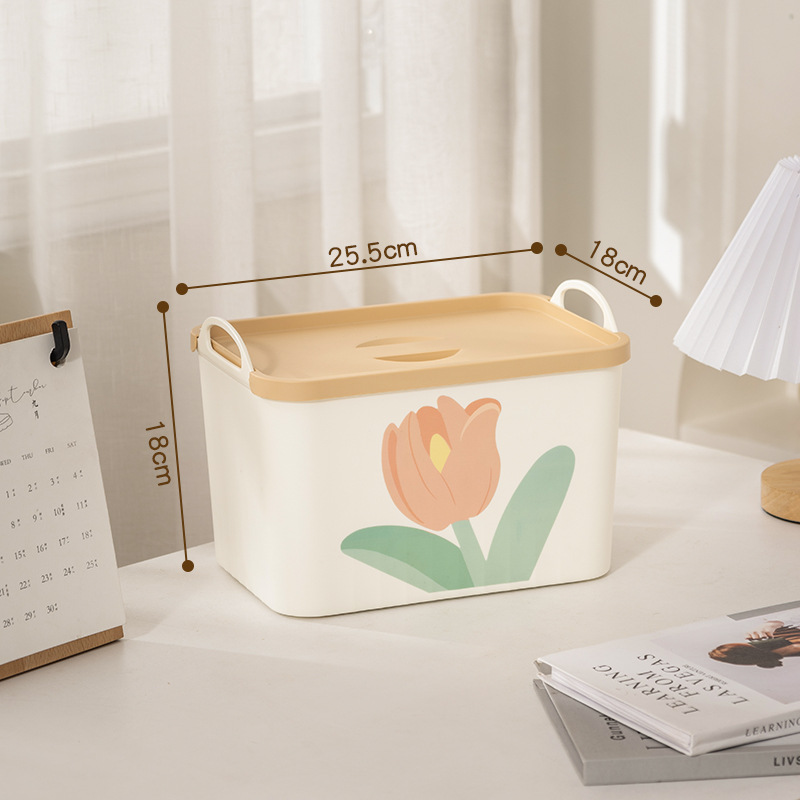 뚜껑 방진 간식 장난감 상자 기숙사 옷장 상자를 가진 튤립 휴대용 저장 상자 가정용 옷 보관 상자