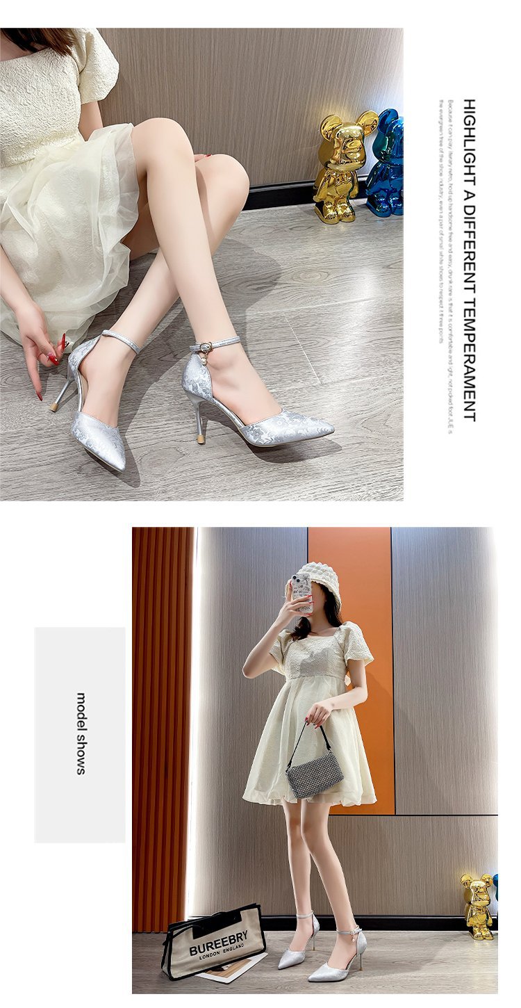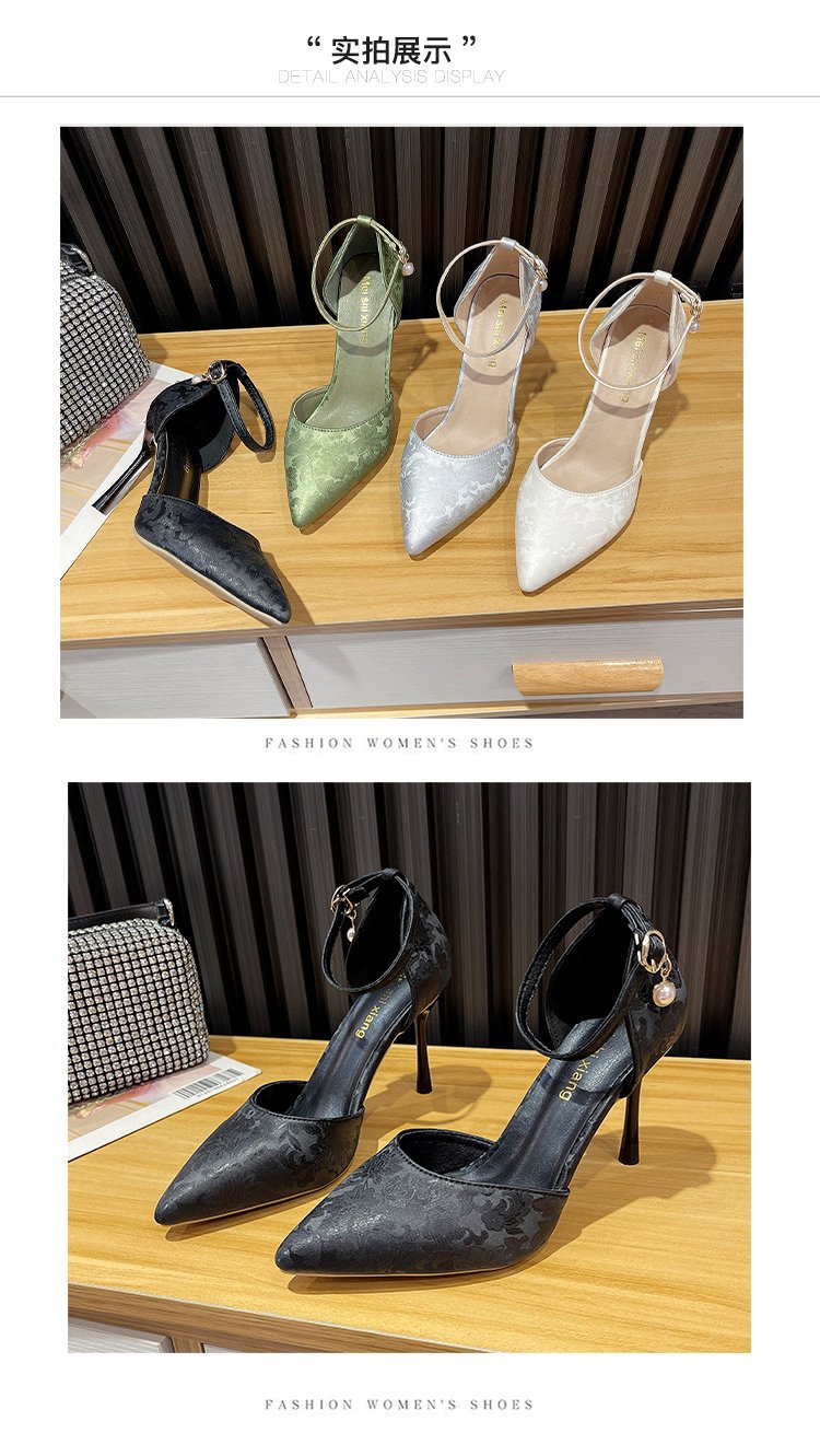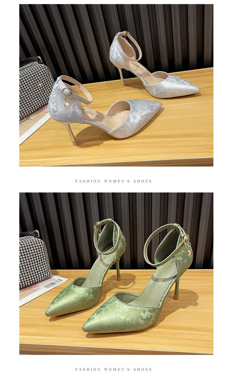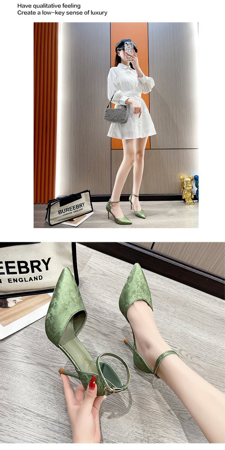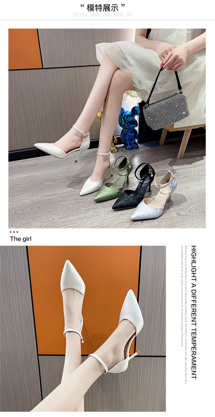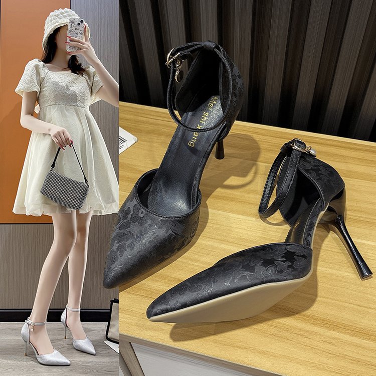 2024 여름 새로운 국가 스타일 중공 단일 레이어 신발 한 단어 버클 뾰족한 스틸레토 힐 하이힐 스커트 여성 신발 도매스토어 가기