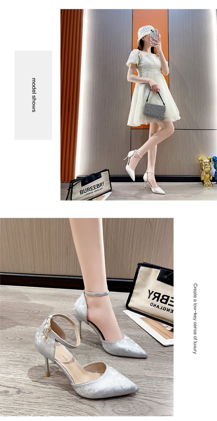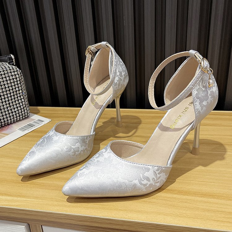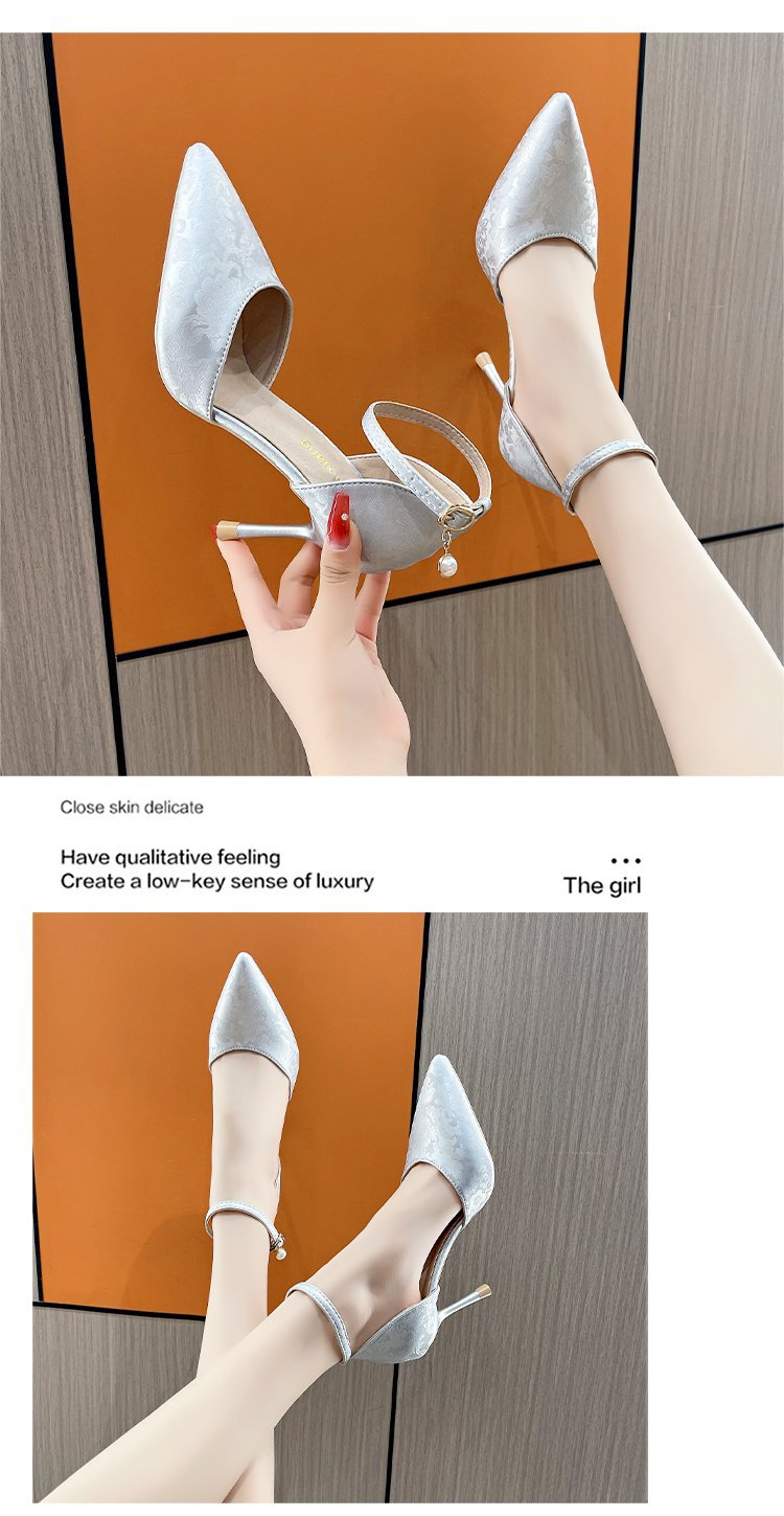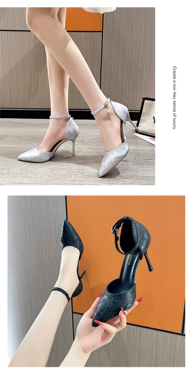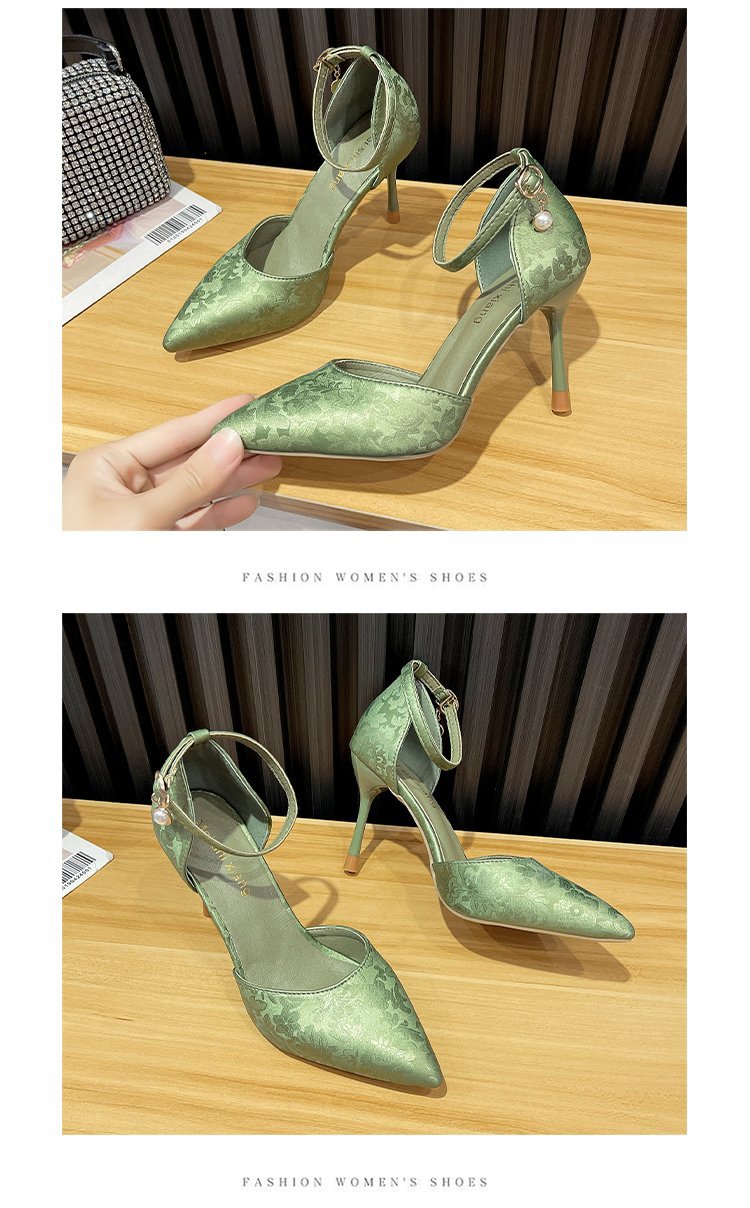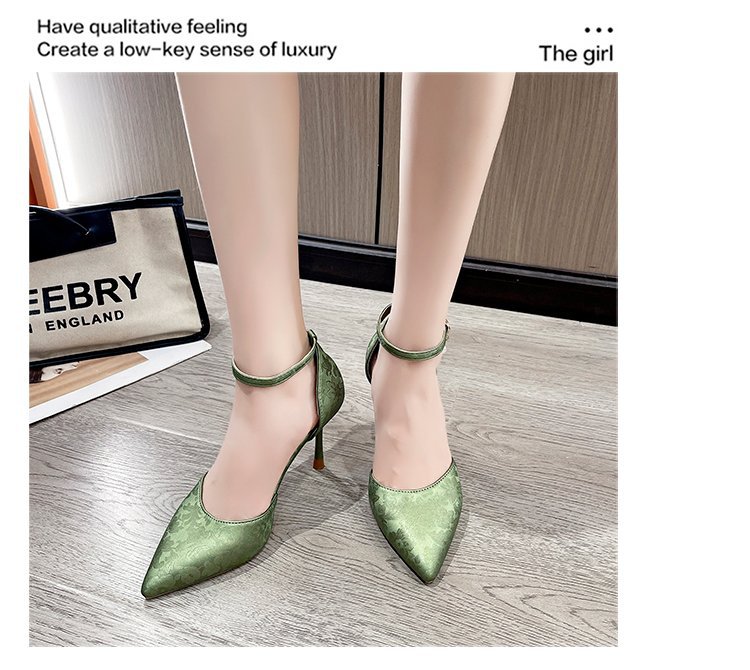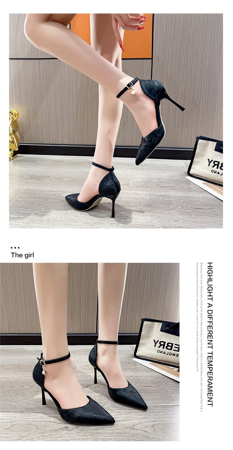 2024 여름 새로운 국가 스타일 중공 단일 레이어 신발 한 단어 버클 뾰족한 스틸레토 힐 하이힐 스커트 여성 신발 도매스토어 가기